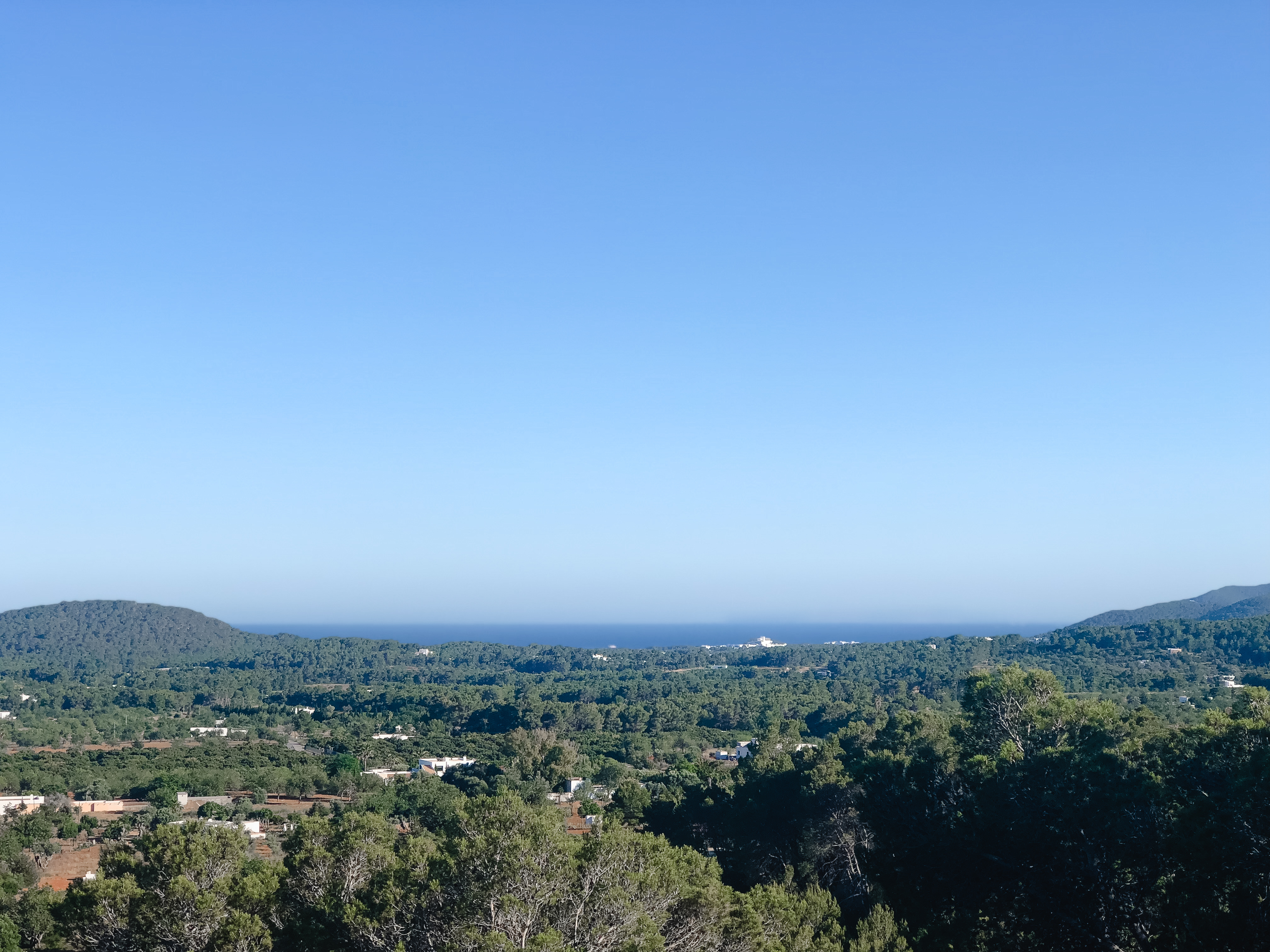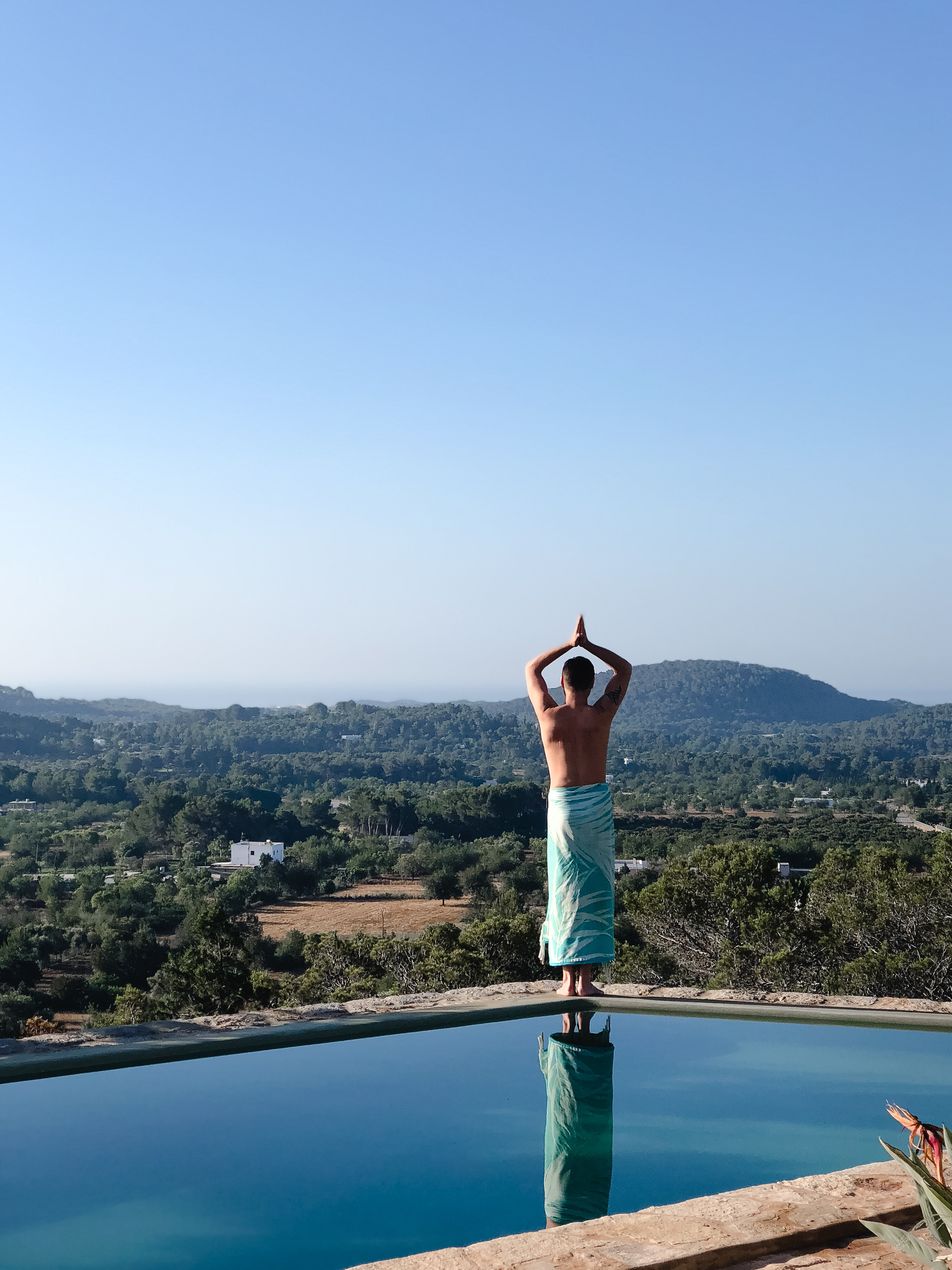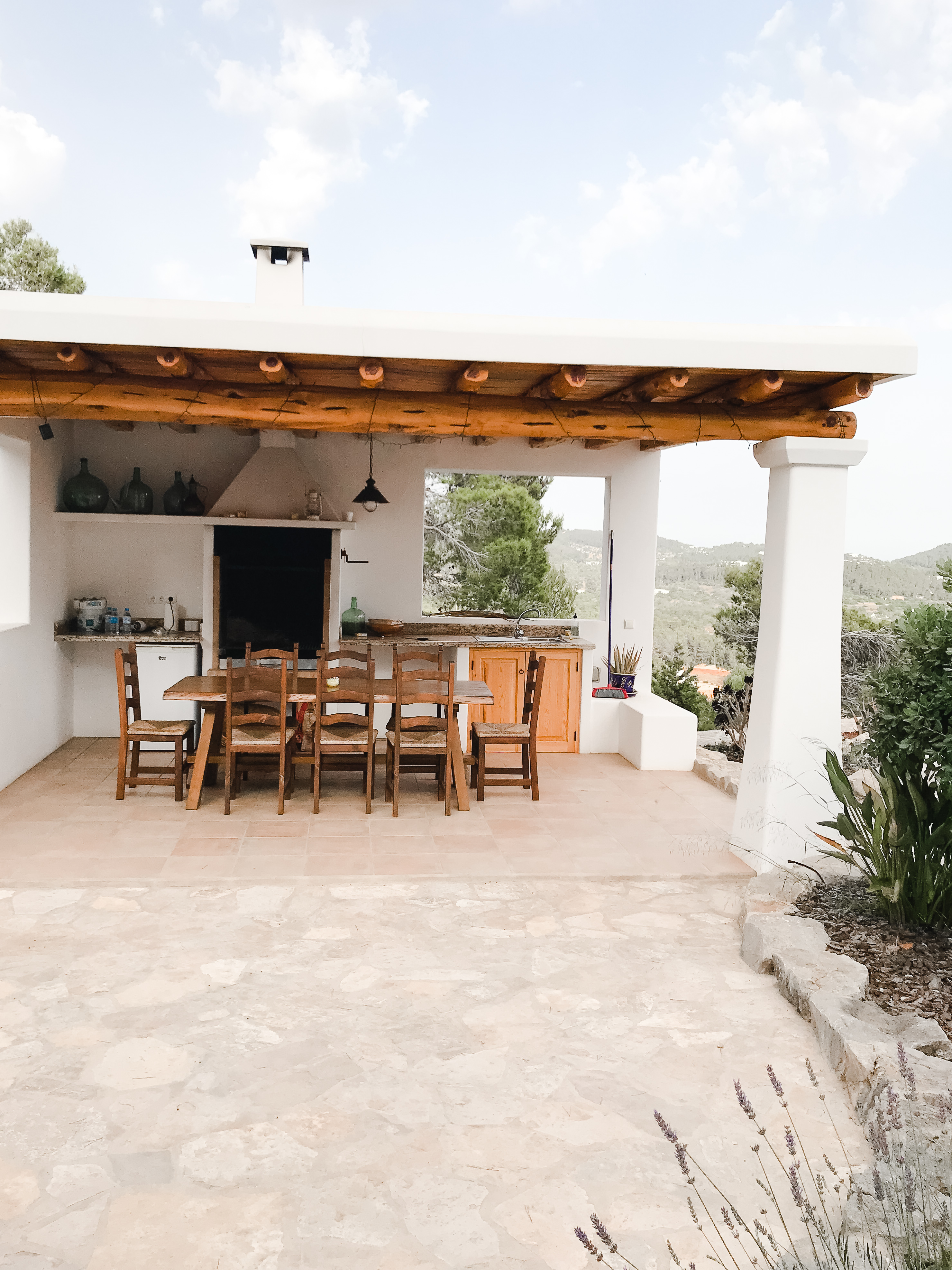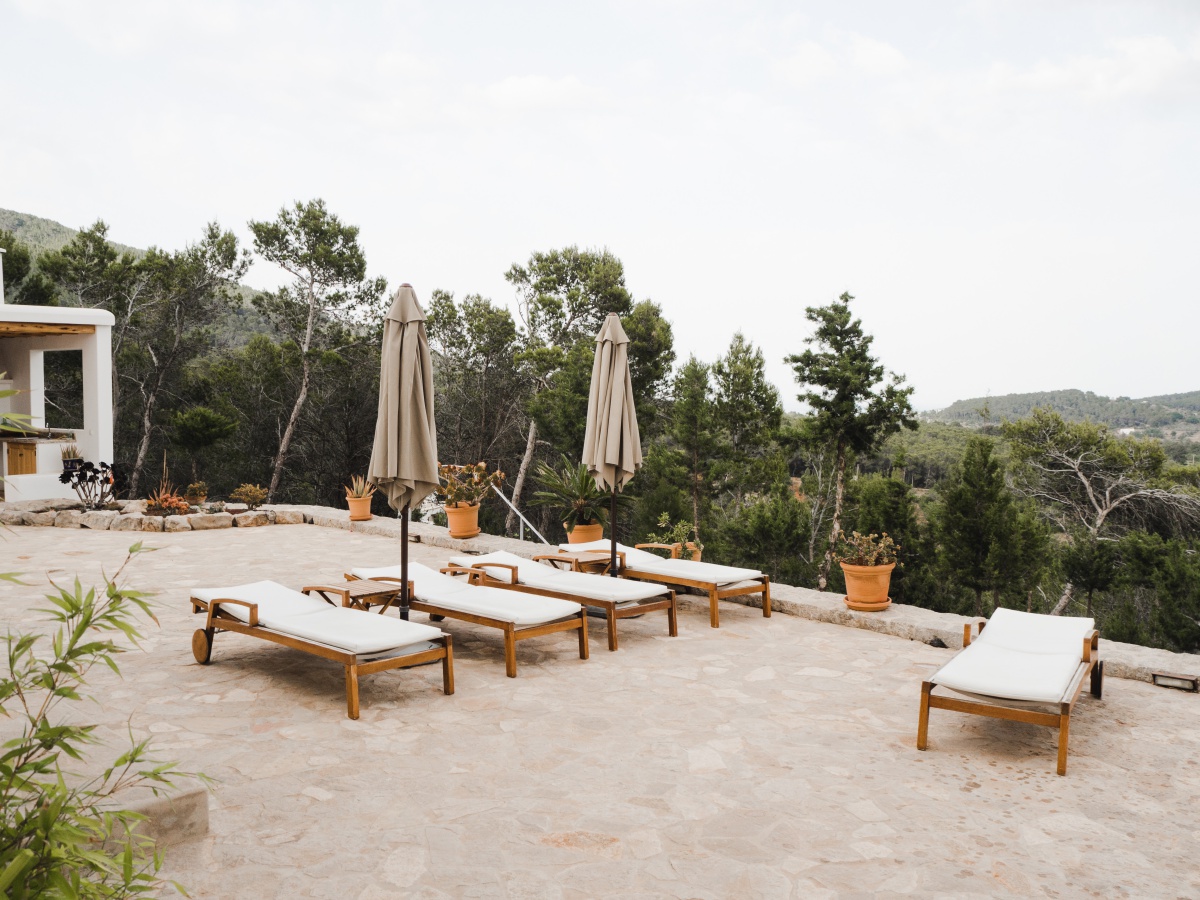 Direkt vom Wohnzimmer kommt man auf die Terrasse, von wo aus man eine atemberaubende Aussicht auf das Landesinnere und das Meer hat. Bei gutem Wetter hat man hier sogar Sicht auf Formentera. Auf der Terrasse befindet sich die nächste Sitzgelegenheit, wo in der Früh alles begann. Und zwar mit einem Frühstück, das zugleich bei uns teilweise auch schon Mittagessen war. Aber hey, take it easy – we’re living the Ibiza Life. Hier ticken die Uhren etwas anders, auch viele der Beach Clubs öffnen erst gegen 11.00 Uhr ihre Pforten.