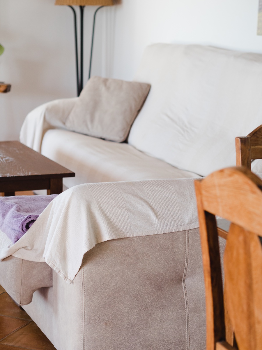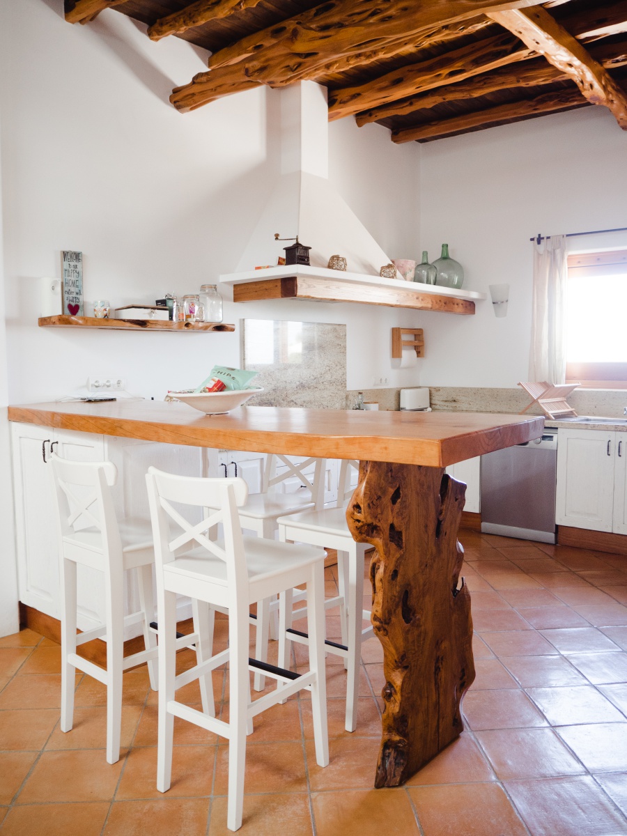 Can Pau ist für sechs Personen ausgerichtet und verfügt über drei Schlafzimmer, ein Haupt-Schlafzimmer mit Doppelbett und zwei Schlafzimmer, wo die Betten je nach Belieben des Gastes zusammengeschoben werden können. Es gibt zwei Bäder – eines mit Badewanne, das andere mit Dusche. Also perfekt für vier Personen, da mein Mann und ich das dritte Zimmer als Ankleide benutzten und so jeder seinen abgetrennten Bereich hat. So hat man auch in einem Urlaub zu viert etwas Privatsphäre. Alle drei Zimmer sind mit Klimaanlage ausgestattet, welche wir aber nicht in Betrieb hatten. Das Haupt-Schlafzimmer hat außerdem noch Ausgang zur Terrasse.
