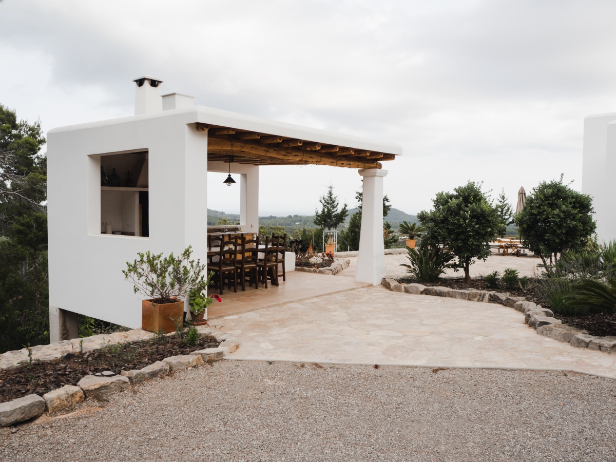 Das Haus befindet sich auf einem Berg in der ländlichen Gegend von San Carlos, man ist aber in ein paar Minuten mit dem Auto im Dorf Santa Eulalia des Rio. Ein Ort, welcher sich perfekt für unseren Trip erwies. Schon von der Straße unten sieht man die Villa, was vor allem bei Nacht sensationell aussieht. Hier ist ein Auto mit Allradantrieb von Vorteil, denn sonst könnte der Weg etwas beschwerlich werden.