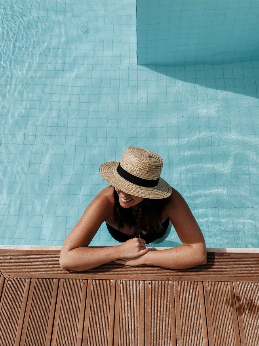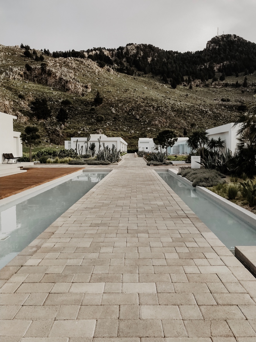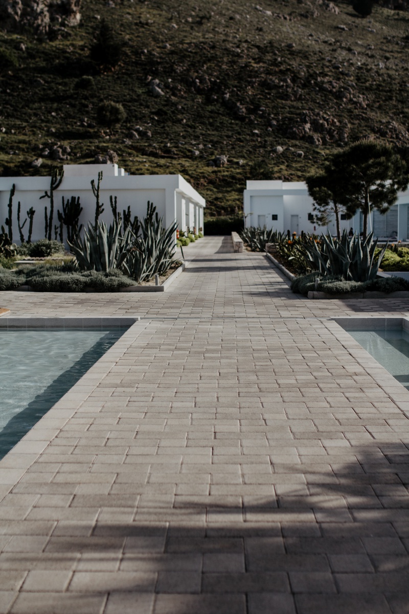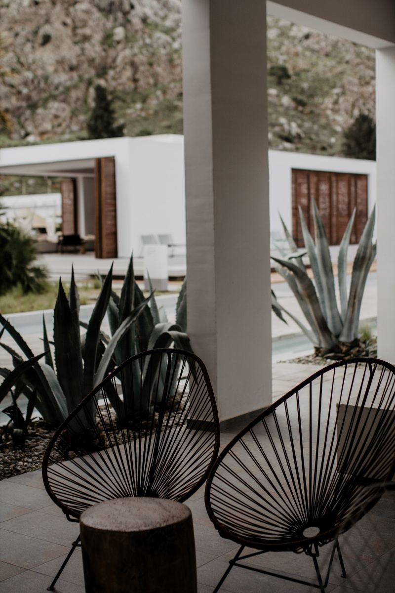 Das Highlight ist natürlich mit Abstand die eigene Terrasse mit Zugang zum Pool, den man sich mit ein paar Einheiten teilt. Jedes der 90 Zimmer verfügt hier über einen Sharing Pool. Die Sonnenliegen auf der Terrasse, welche versetzt ausgerichtet sind, laden zum Sonnenbaden ein. Auch zwei stylische Sessel und ein kleines Tischerl findet ihr auf eurer eigenen Terrasse. Wir haben das Zimmer unter Tags nie verlassen, da wir uns sooo wohlgefühlt haben. Wir hatten von der Früh weg bis ca. 15 Uhr Sonne auf unserer Terrasse und das war mehr als perfekt. Da der Pool nicht beheizt ist, war dieser sehr erfrischend.