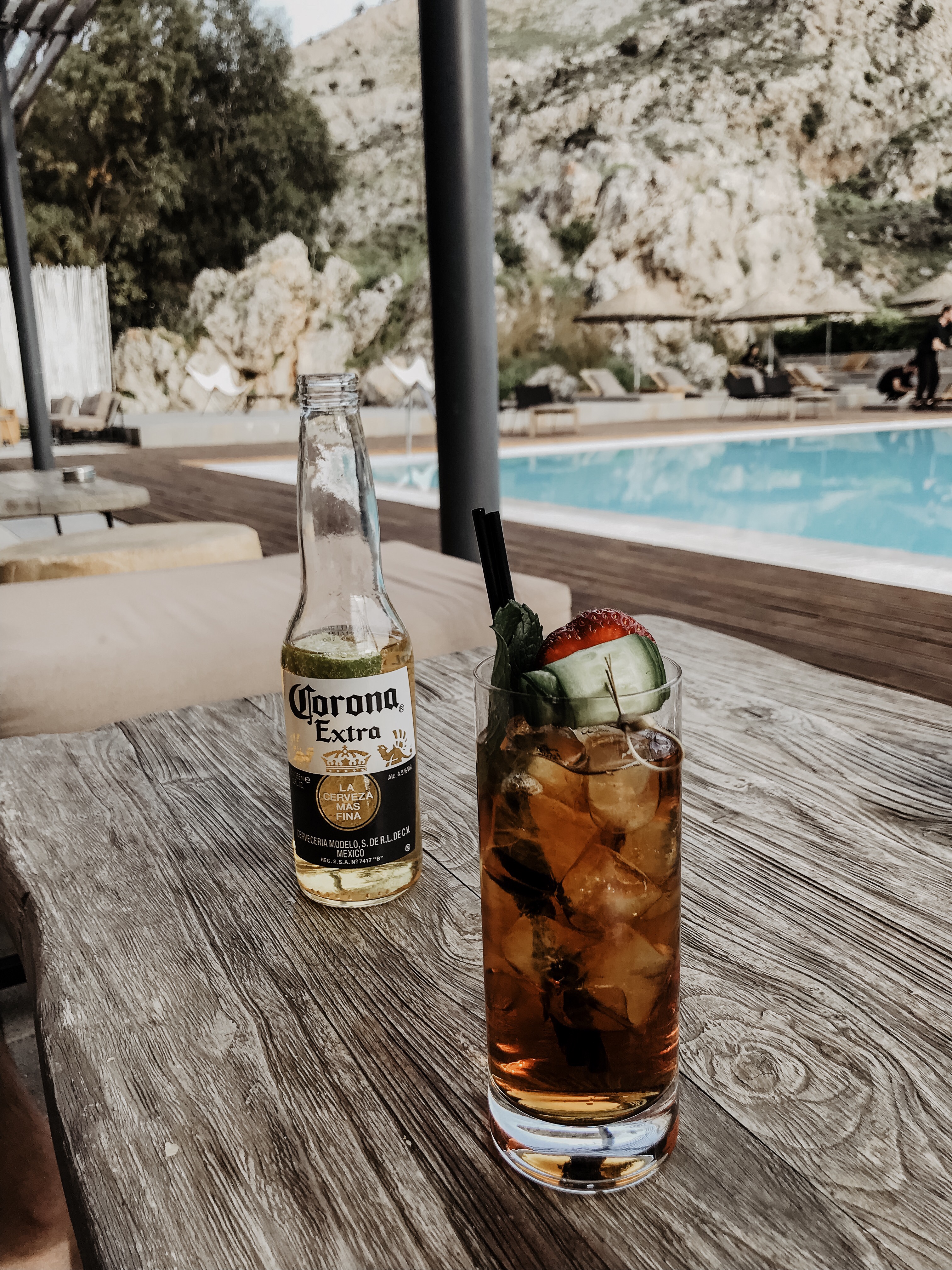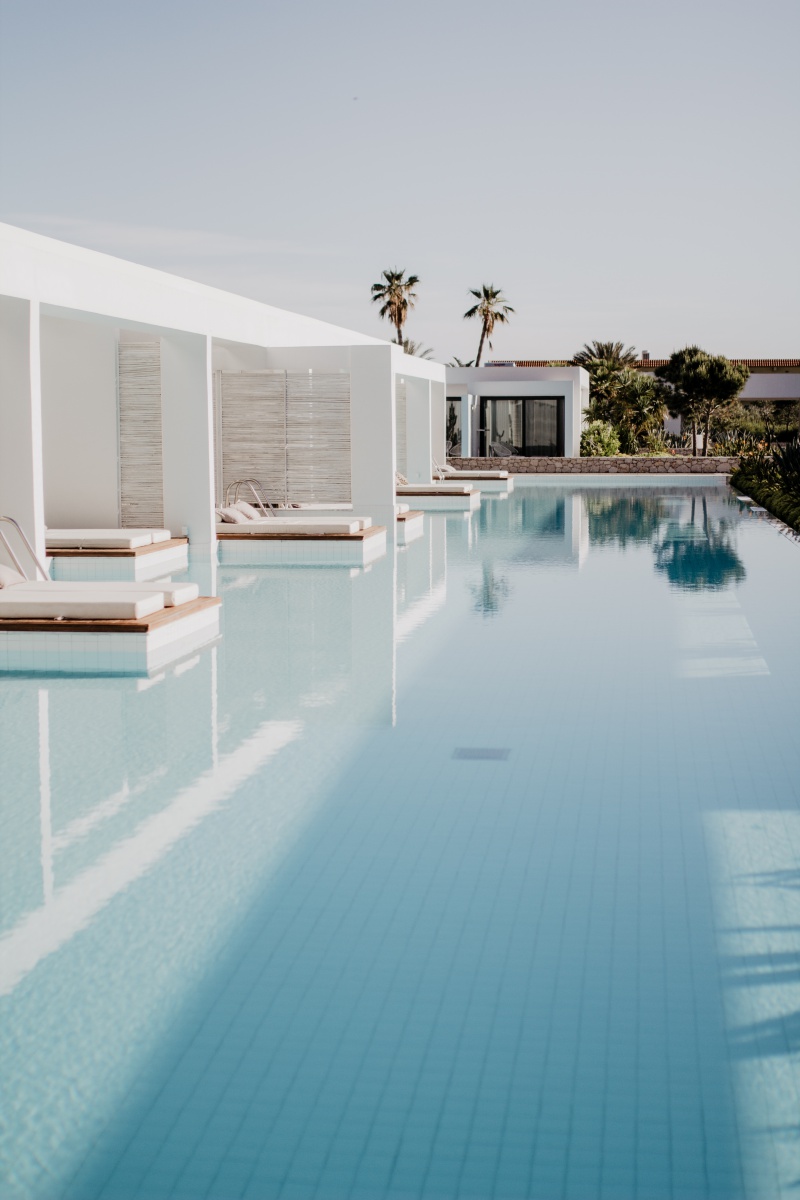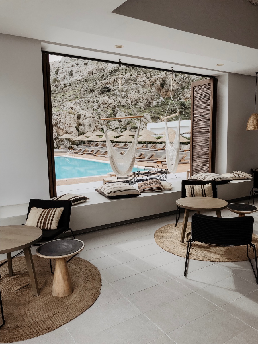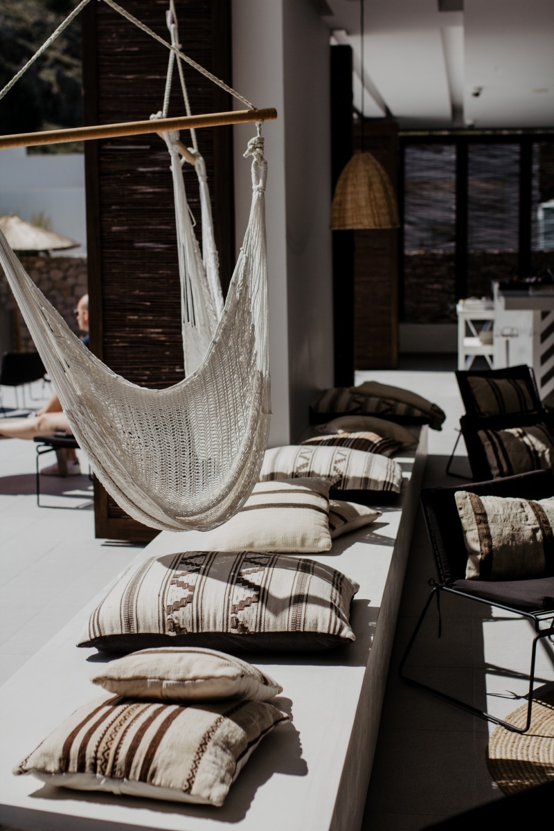 Der Hauptpool liegt wunderschön, mit einem herrlichen View auf die Berge. Hier kann man den Klängen des DJ’s lauschen, coole Drinks genießen oder einfach nur Sonnen tanken. Die Hängesessel im Boho Style bei der Bar laden zum Chillen ein.