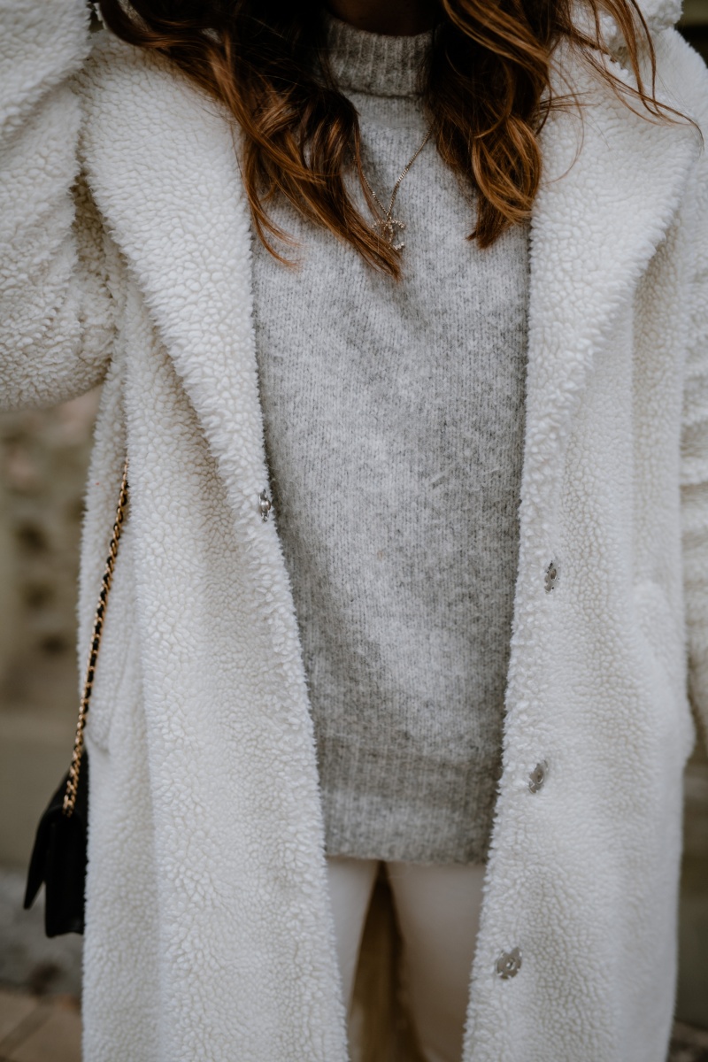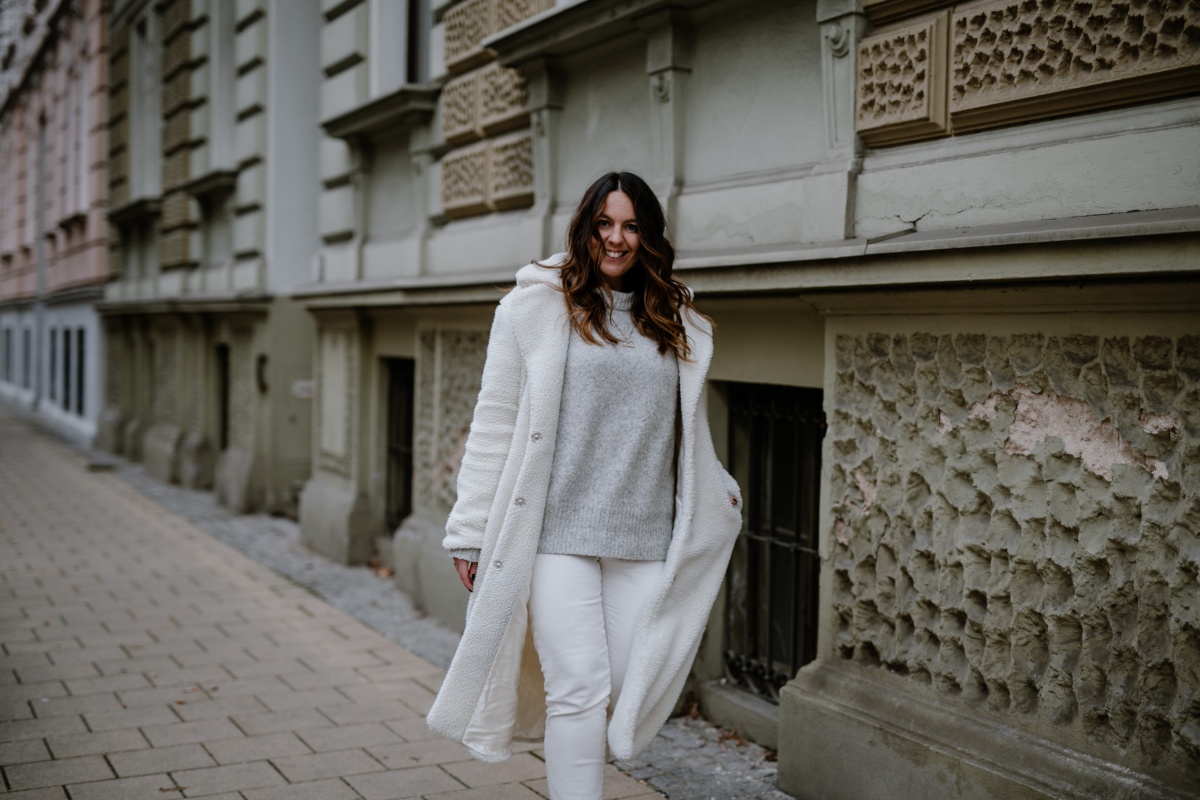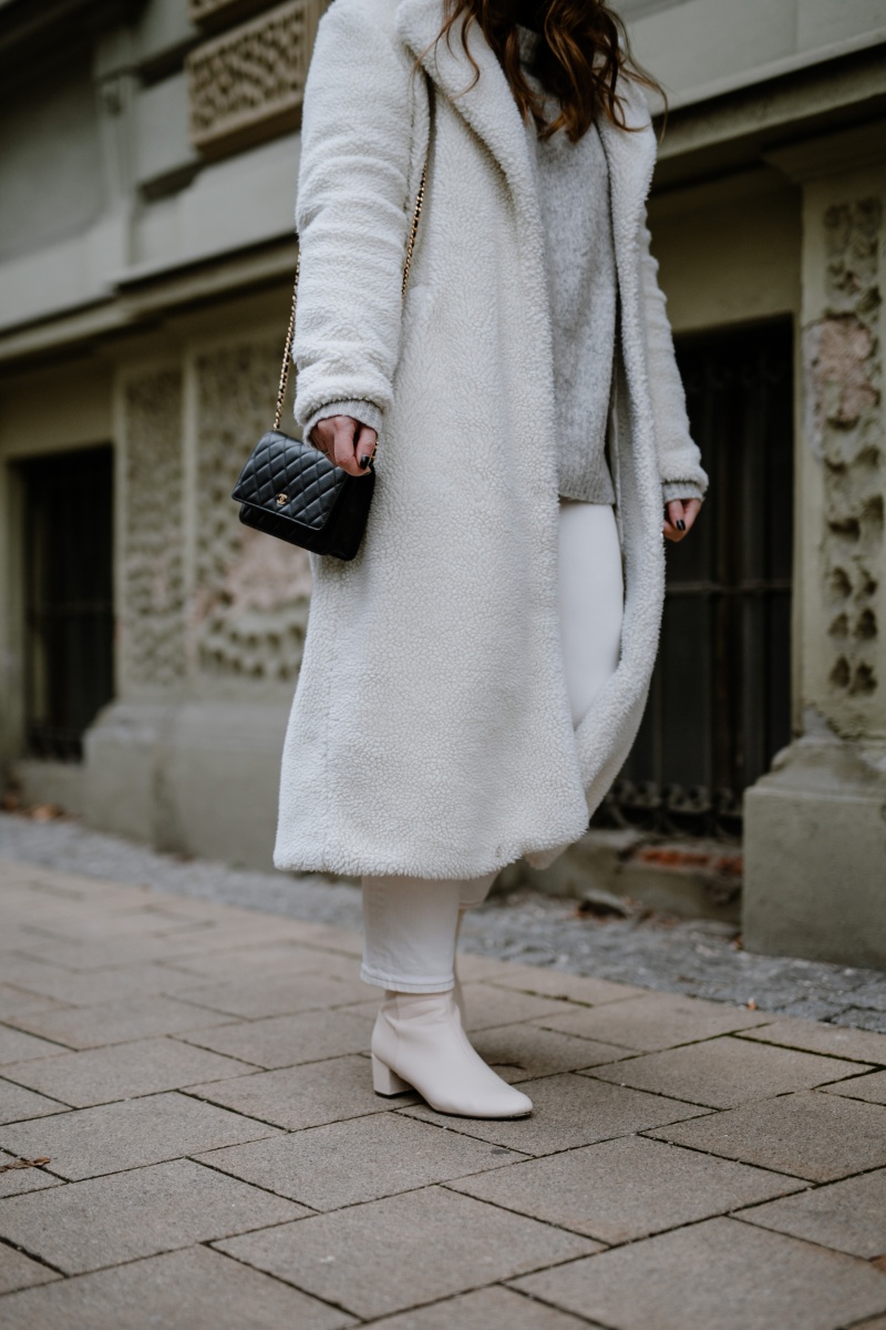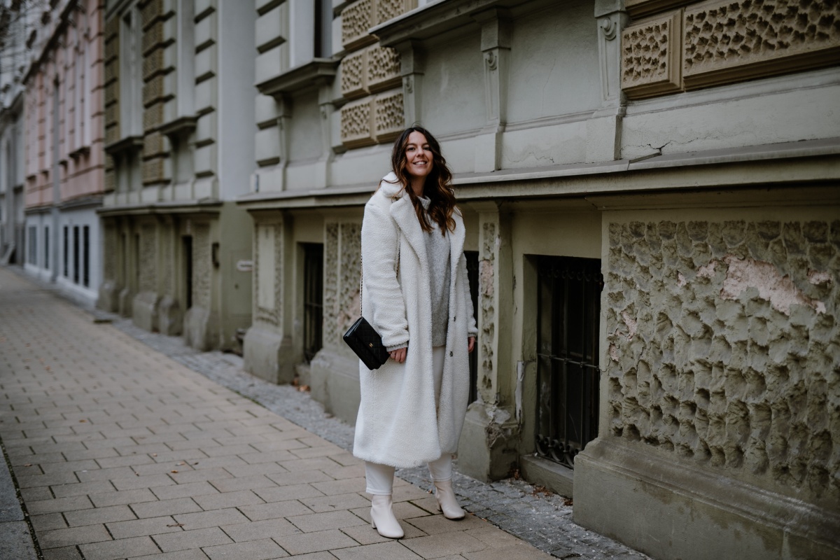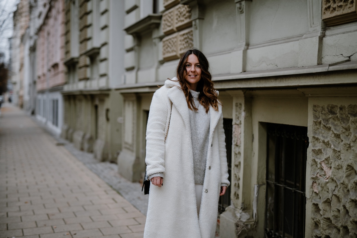Hallo, toller Blogpost und tolles Outfit! Der Teddy Mantel steht dir wirklich gut und sieht auch sehr gemütlich und warm aus! Auch die Kombi mit der weißen Jeans und den weißen Stiefeln finde ich überraschend gut, da ich glaube ich, nie so viel weiß miteinander kombiniert hätte. Aber – man lernt nie aus 🙂