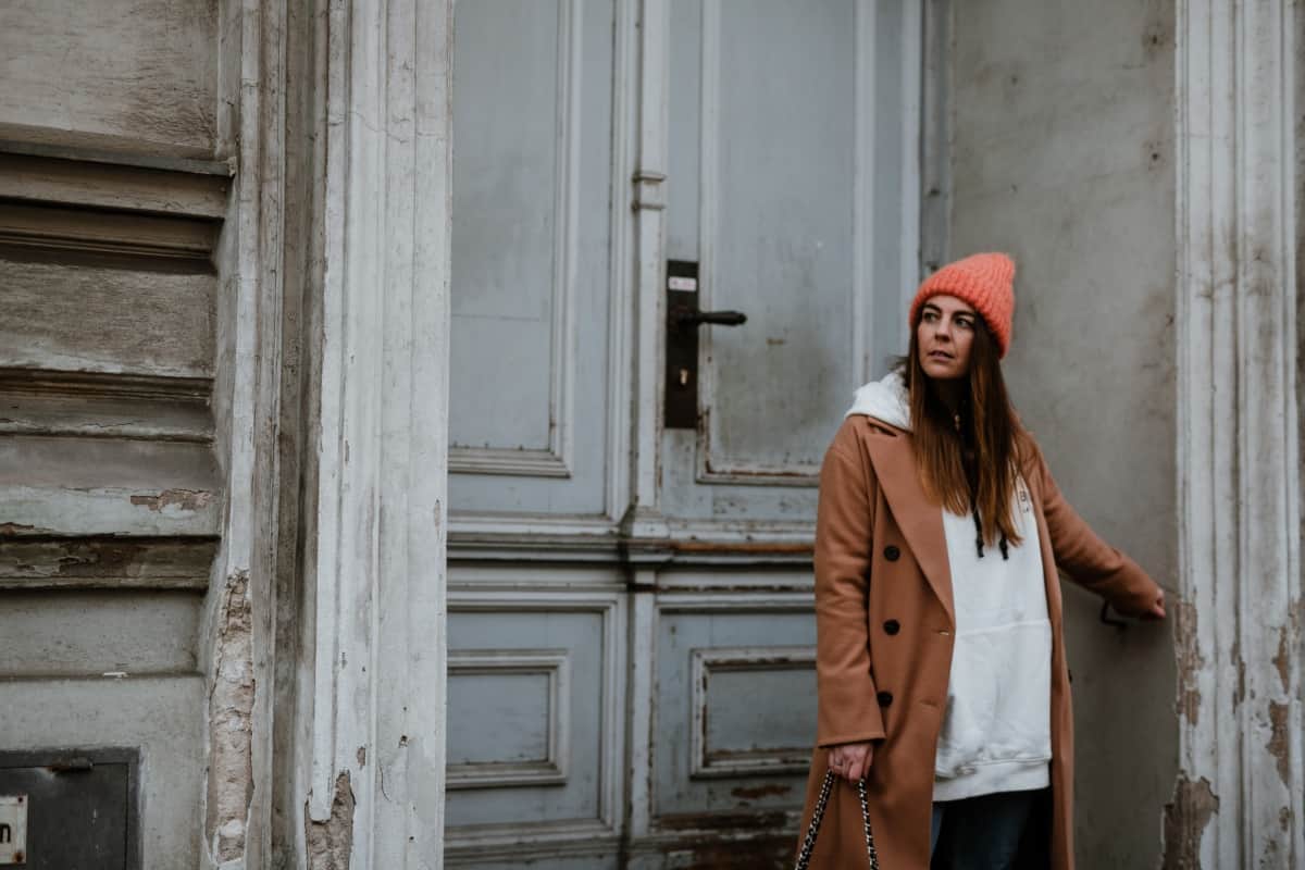 So wie auch dieses Modell in orange. Es muss nicht immer schwarz oder grau sein und bringt so etwas Farbe in die tristen und grauen Wintertage. Diese Haube hat es mir ganz besonders angetan, dass ich zweimal zugeschlagen und sie gleich in zwei Farben gekauft habe. Ich mag den Schnitt und das Material total gerne.