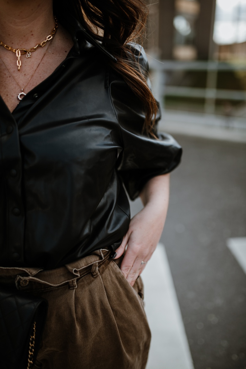 Im März haben wir uns für das Thema Fake Leather entschieden. Ich war schon immer ein großer Fan von diesen Teilen und jetzt kommt man kaum mehr dran vorbei. Mein Lieblings-Teil ist zur Zeit definitiv diese Bluse. Die Puff-Ärmeln und der Schnitt haben es mir sofort angetan. Wenn es die Bluse in beige auch noch geben würde …