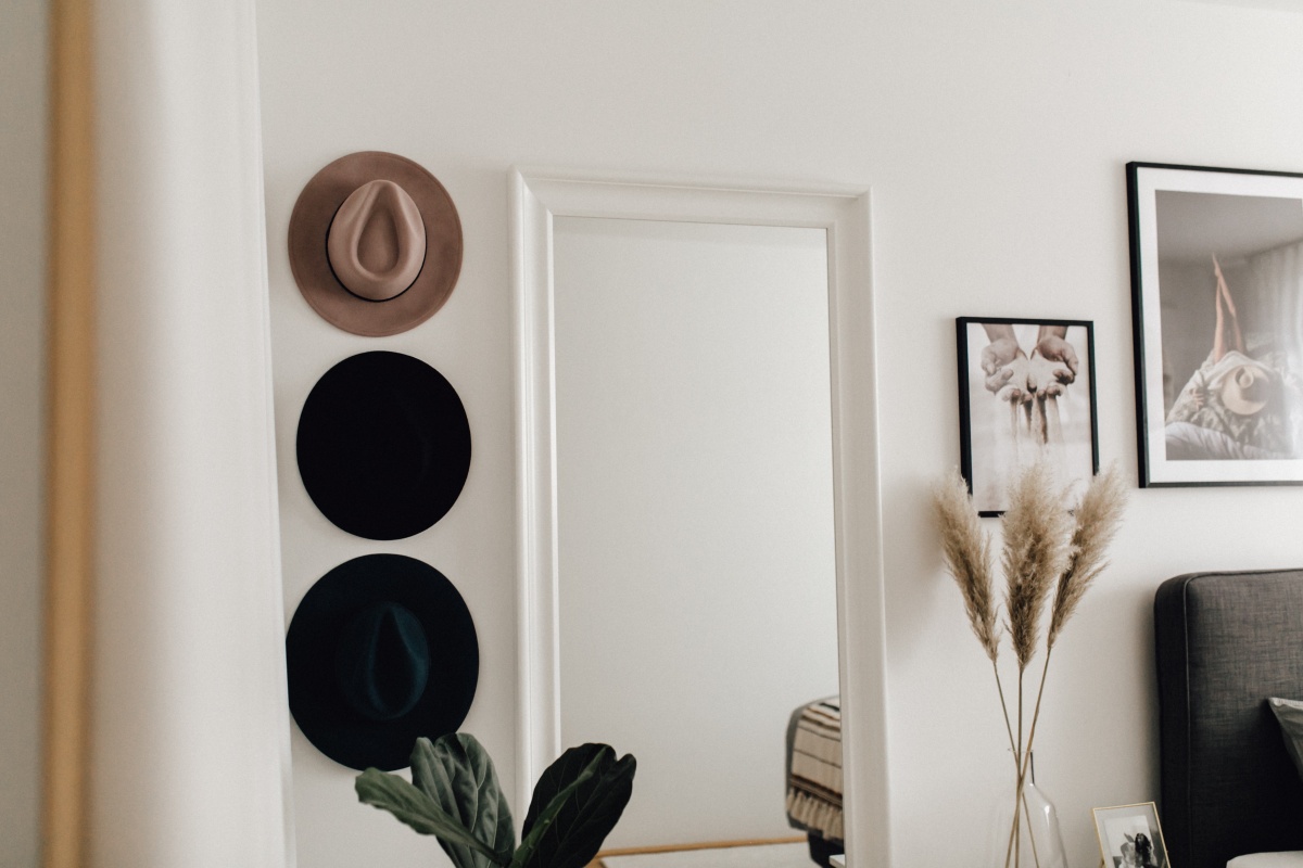 Meine Hüte haben nun auch einen schönen Platz gefunden, wo sie nicht in Vergessenheit geraten. Und die neue Lampe verleiht dem Raum noch den gewissen Boho Touch. Ich bin auf jeden Fall super happy.