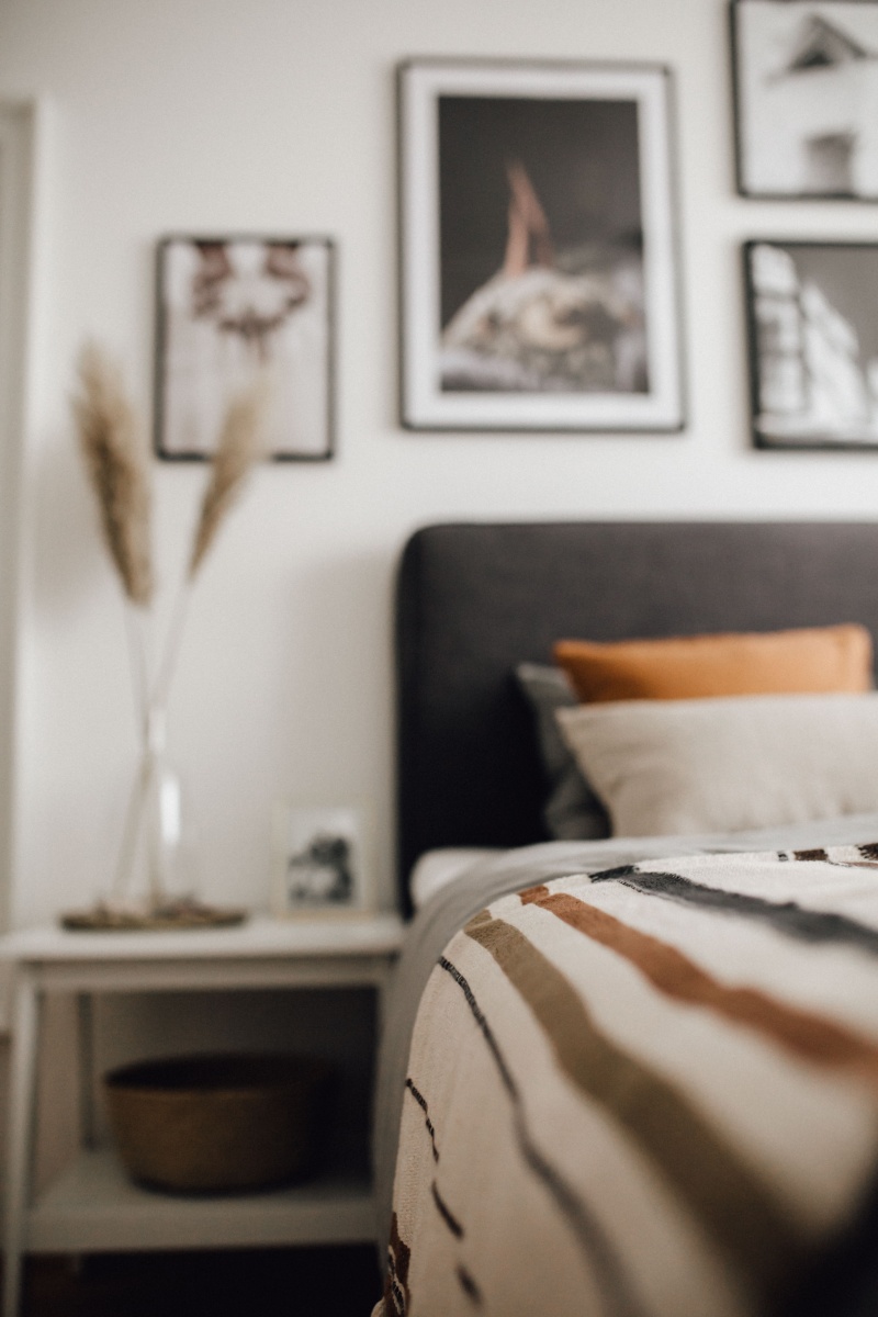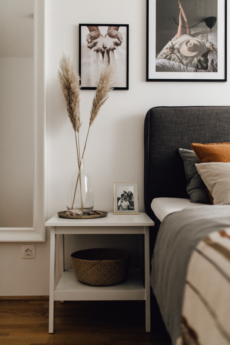 Im Zuge dessen habe ich mich auch gleich um etwas Deko für unser Schlafzimmer gekümmert, denn auch diese wurde etwas vernachlässigt.  Weniger ist meiner Meinung nach mehr. Ich mag das ja gar nicht, wenn alles zu vollgestellt ist. Darum auch nur ganz dezent. Pampasgras darf natürlich auch hier nicht fehlen. Dieses habe ich mittlerweile schon in der ganzen Wohnung verteilt.