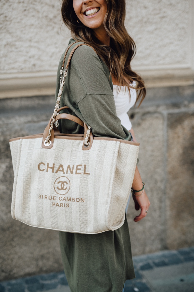 Mein Look kann aber ganz schnell für kältere Tage abgewandelt werden und so kann mit einem Langarm Shirt und Boots einem schönen Herbsttag nichts im Wege stehen. Meine neue Tasche ist bei dem Look sowieso ein absoluter Blickfang. Ich kann es noch immer nicht ganz glauben, dass dieses Baby mir gehört. Ich freue mich jetzt schon auf ganz viele Looks mit dieser Tasche – und wie viel Platz man in dieser Tasche hat.