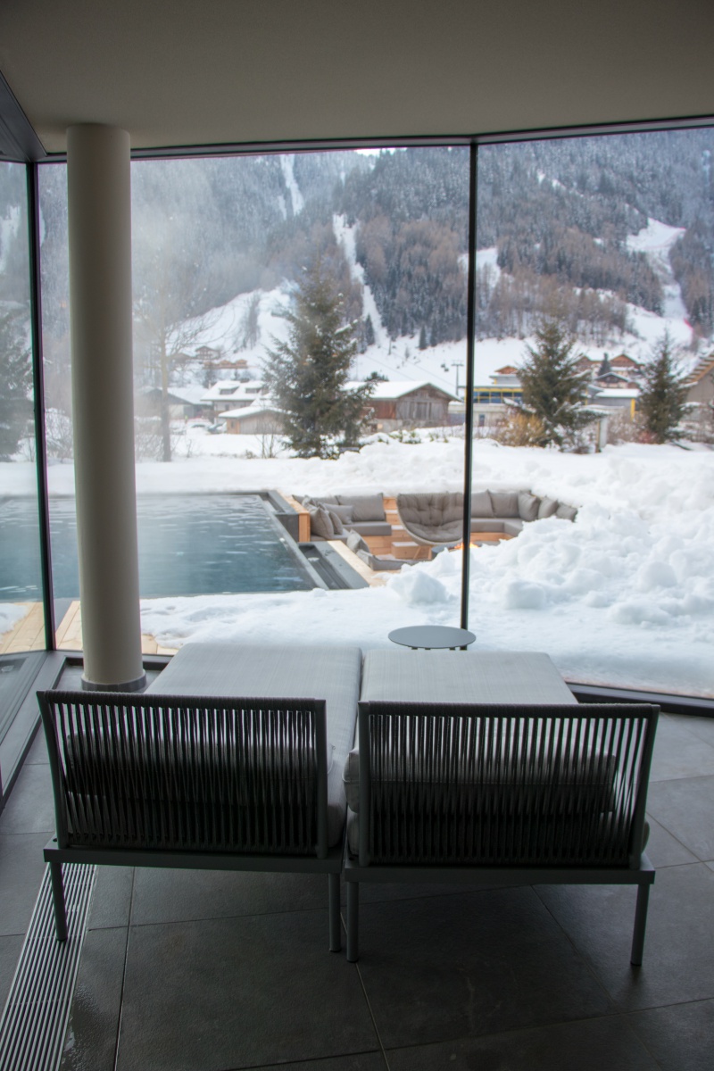 Das Highlight ist hier die Finnische Panorama-Sauna, mit wie es der Name schon sagt, einem herrlichen Ausblick auf die Wälder und Berge. Die Aufgüsse, welche bei unseren Aufenthalt von Steffi durchgeführt wurden, waren ein wahrer Genuss. Wir waren mehr als begeistert, mit welcher Leidenschaft diese zelebriert wurden. Leider ist das mit den Aufgüssen nicht in allen Hotels so, aber hier hat es uns an nichts gefehlt. Was mir im gesamten Wellnessbereich noch positiv aufgefallen ist, das immer und überall genügend Handtücher zur freien Verfügung standen. Ein großer Pluspunkt.