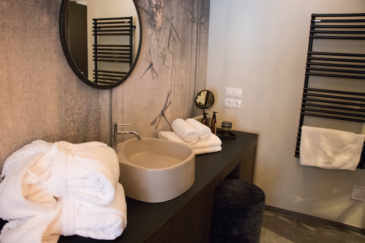 Auf 45 Quadratmetern wird hier eine Wohlfühloase der ganz besonderen Art geschaffen. Die Zimmer sind allesamt ein Traum und entführen dich auf eine Reise nach Südostasien. Das Badezimmer wurde offen gestaltet, mit abgetrennten WC. Hier merkt man, wie viel Liebe in jedes noch so kleinste Detail gesteckt wurde. Unsere Erwartungen wurden mehr als übertroffen! Als ich das erste Mal in den Bademantel schlüpfte, war es um mich geschehen. Ich hatte wirklich noch nie so einen kuscheligen Bademantel an!