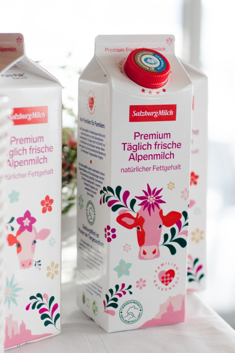 Im Vordergrund standen die Qualität und die Produkte der SalzburgMilch. Neben der Milch werden auch noch ganz viele andere tolle Produkte wie zB Buttermilch, Käse und vor allem Joghurt produziert. Nicht nur, dass die Salzburg Milch hervorragend schmeckt, ist auch das neue Design sehr ansprechend.