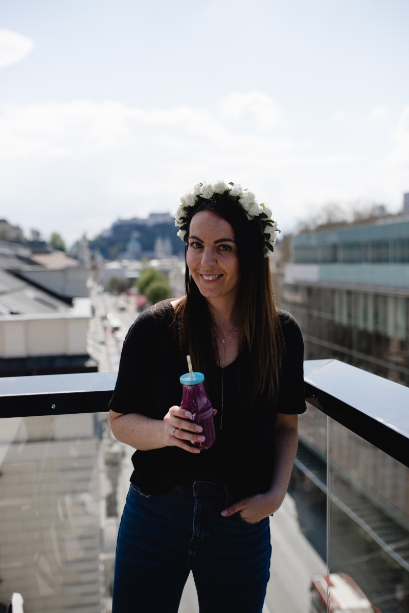 Brunchen zählt definitiv zu meiner liebsten Mahlzeit, umso mehr freute ich mich über die Einladung nach Salzburg. Was gibt es Schöneres als mit einer Tasse Kaffee, netten Mädels und ganz vielen Köstlichkeiten in den Tag zu starten? SalzburgMilch hat sich hier wirklich selbst übertroffen – die Location, auf der Dachterrasse des Imlauer Hotels Pitter war einfach nur traumhaft und von dem Essen kann ich heute nur träumen. Wir wurden mit einem Meer aus Blumen begrüßt und sogar eigene Flower Crowns wurden für uns gemacht. Was will ein Frauenherz mehr?