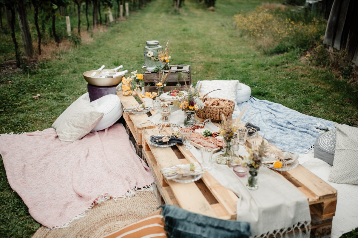 Was ihr alles für ein Picknick benötigt? Natürlich war dieses Picknick total aufwendig, aber auch mit weniger Accessoires kann man toll picknicken. Wichtig ist, dass ihr für euch das perfekte Platzerl findet, wo man vielleicht auch etwas für sich ist. Dann benötigt ihr ein paar Decken und eventuell Polster um es euch gemütlich zu machen.