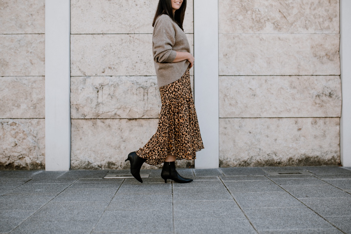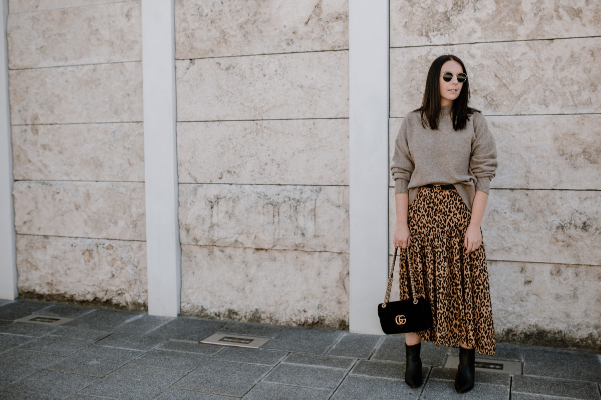 Bei diesem Look habe ich mich für ein Leoprint Kleid von Zara entschieden, welches ich kurzerhand zum Rock umfunktioniert habe. Ich war ehrlich gesagt schon ziemlich auf Herbst eingestellt, möchte mich aber nicht beschweren, wenn diese Woche der Sommer nochmal zurückkehrt. Dann bleibt der Pullover eben noch zu Hause.