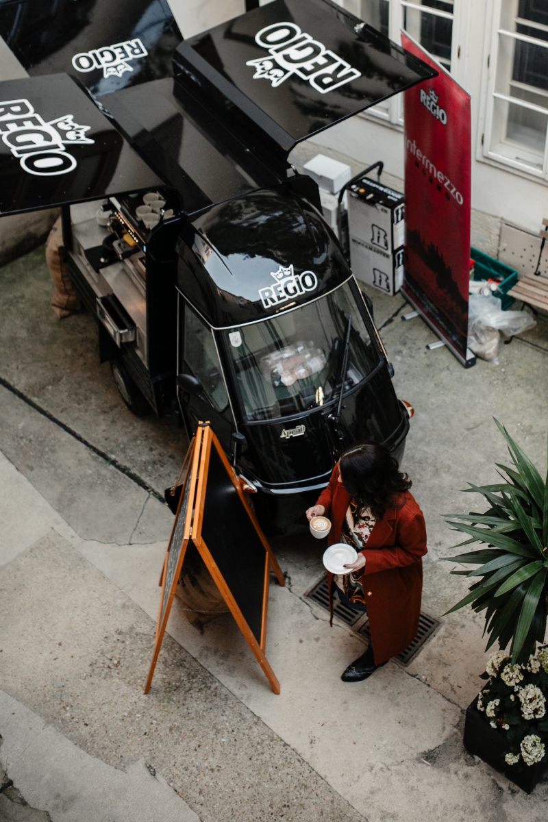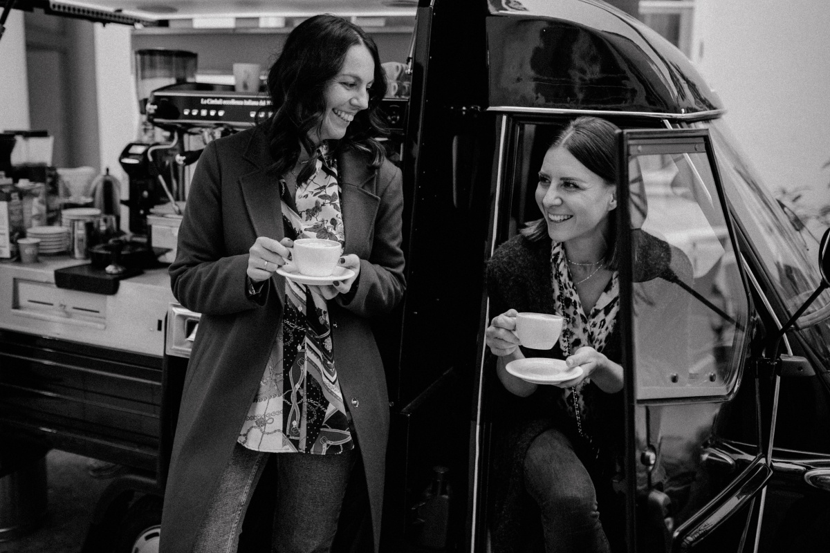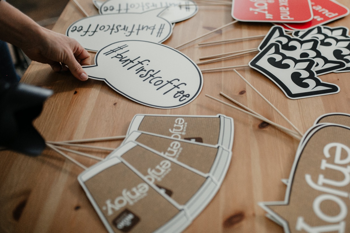 Im Innenhof wartete ein Kaffeewagen mit eigenem Barista auf uns, wo wir von Ivan hilfreiche Tipps bekommen haben. Ob Cappuccino, Verlängerter oder ganz ausgefallen Espresso-Tonic – hier blieben keine Wünsche offen. Auch bei der Photobooth-Station konnte man seiner Kreativität freien Lauf lassen und wie man sieht hatten Verena von whoismocca und ich jede Menge Spaß.