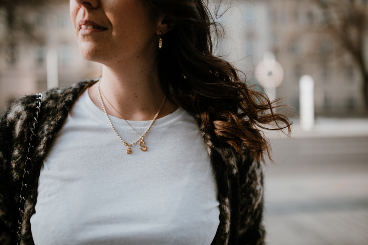 cardigan. edited // shirt. bershka // ketten. anhänger „S“. celinè, Sparkle chain. ARIANE ERNST // tasche. Chanel // jeans. bershka // Schuhe. deichmann