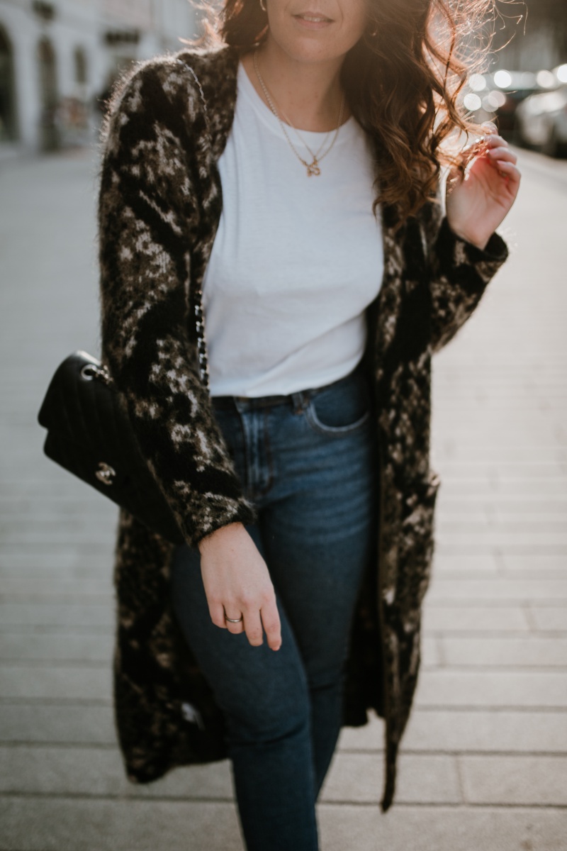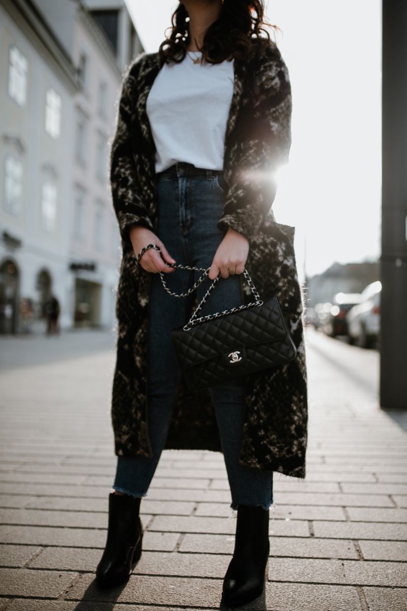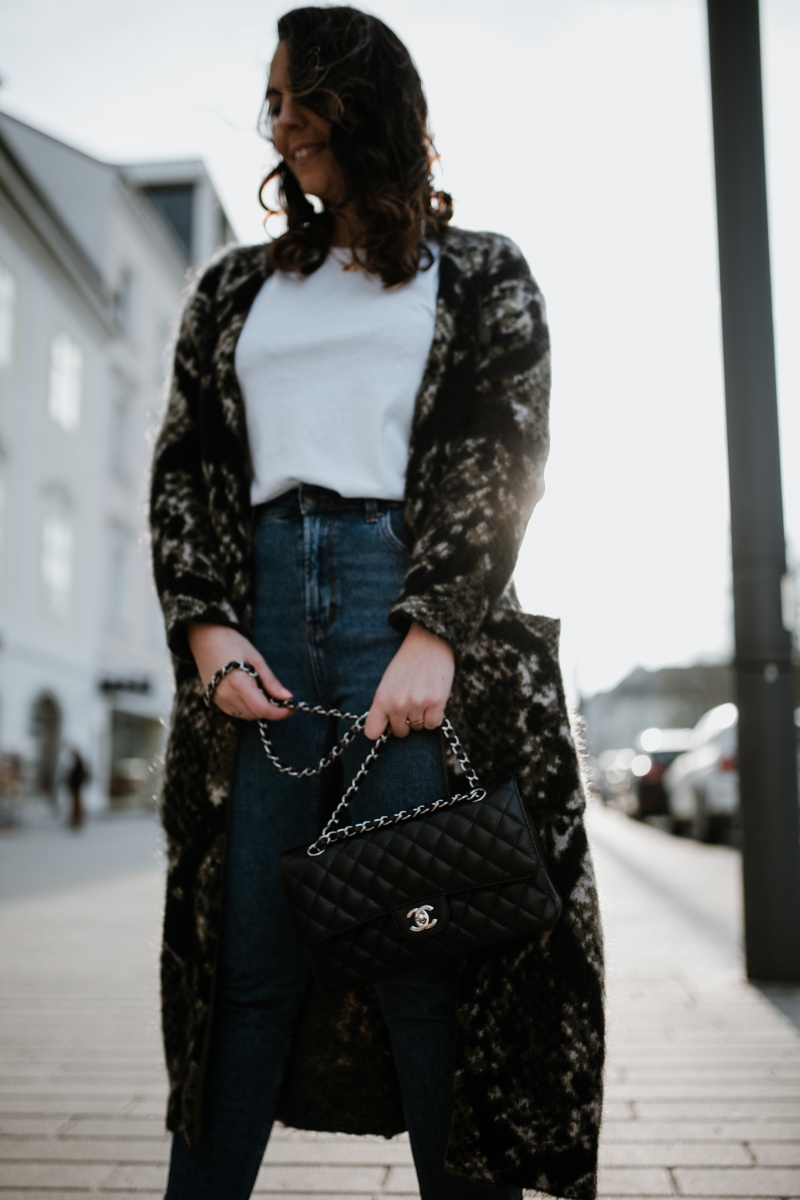 In diesem Fall habe ich meinen geliebten Cardigan wieder mal aus dem letzten Eck meines Kleiderschrankes geholt und mich gefragt, warum ich diesen nicht öfters trage. Aber jetzt wird die Zeit wieder perfekt dafür, denn auf Winterjacken habe ich ja so gar keine Lust mehr. Aber ich glaube, das kann jeder ganz gut nachvollziehen. Tatsächlich ist das auch das erste Outfit hier am Blog mit meinem neuen Chanel Baby. Ihr könnt euch gar nicht vorstellen, wie sehr ich diese Tasche liebe. Aber die ganze Story zu meiner Tasche wird es hier schon ganz bald am Blog geben.