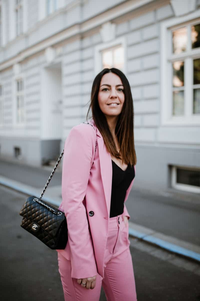 Unglaublich cooler Suits-Look, Steffi! Das Pink steht dir unglaublich gut und die Chanellllllllo is sowieso ein TRAUM!! Top Kombi!! Nehm ich genau so 😉