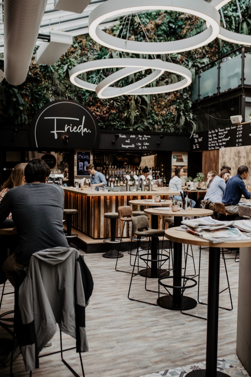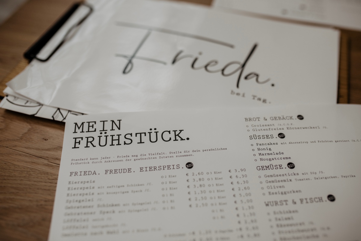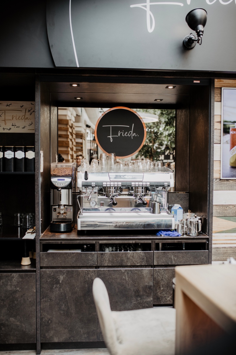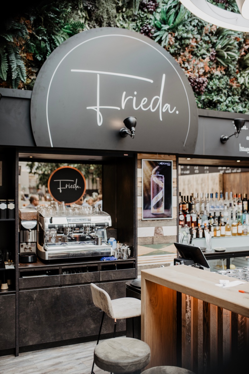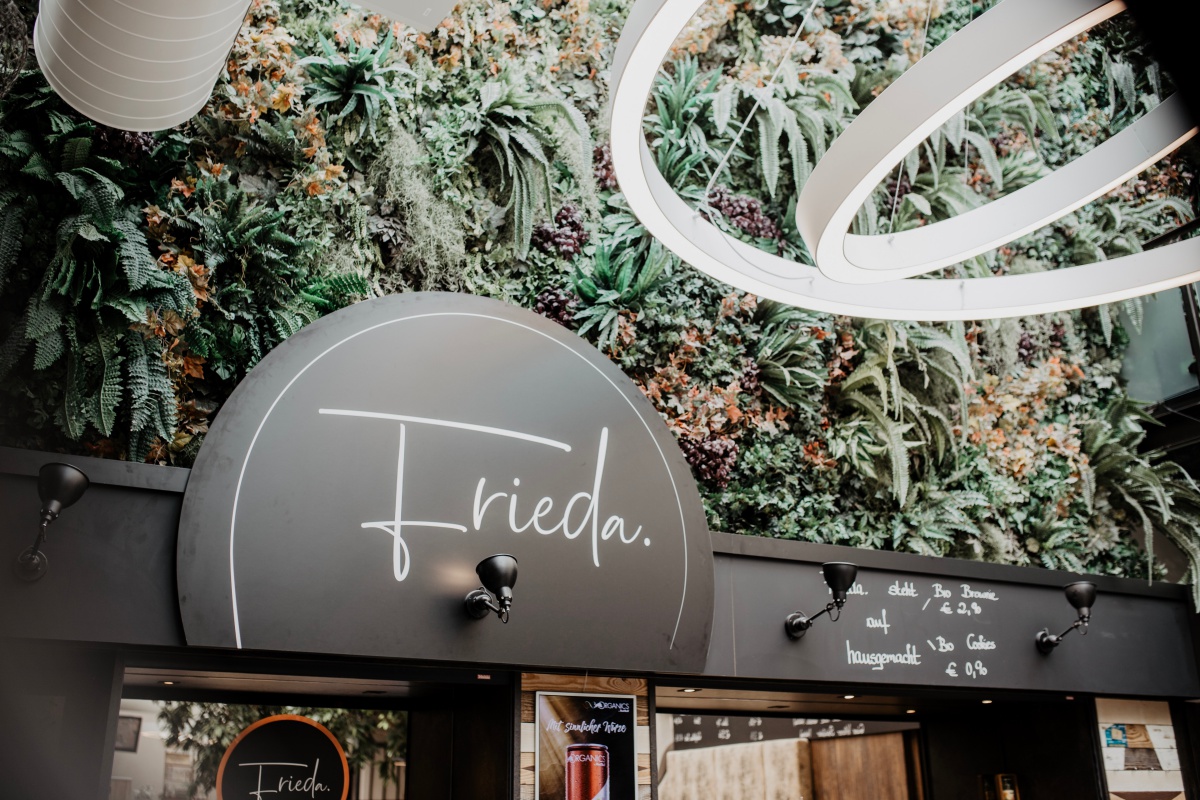 Das Café ist total gemütlich und super stylisch zugleich. Durch ein helles, freundliches Atrium lädt Frieda zum Verweilen ein.