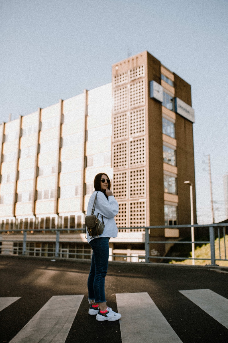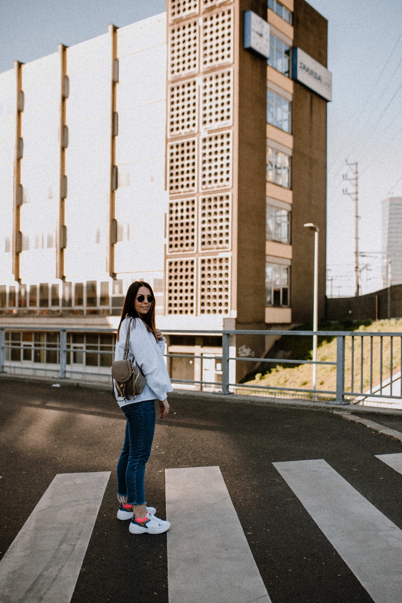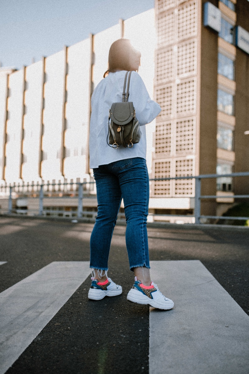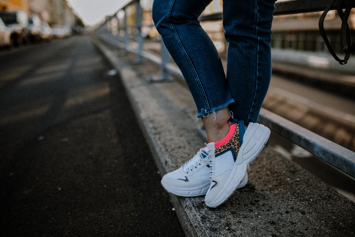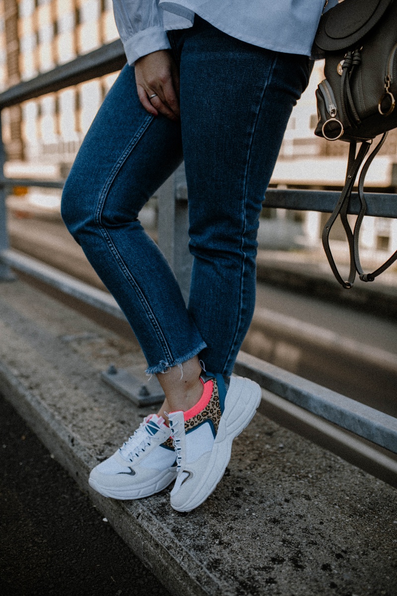 Jetzt kommen wir aber zu meinem Look. Bitte schaut euch meine neuen Sneaker an! Sind die nicht cool? Und wisst ihr was ich am meisten liebe? Die Leo-Details – natürlich – wie sollte es auch anders sein? Lange habe ich mich gegen den Trend gewehrt und bin auch jetzt noch immer kein riesen Fan von diesen Chunky und Ugly Sneakers. Aber dieses Modell hat es mir einfach gleich angetan. Vielleicht liegt es aber auch am Leo-Muster?