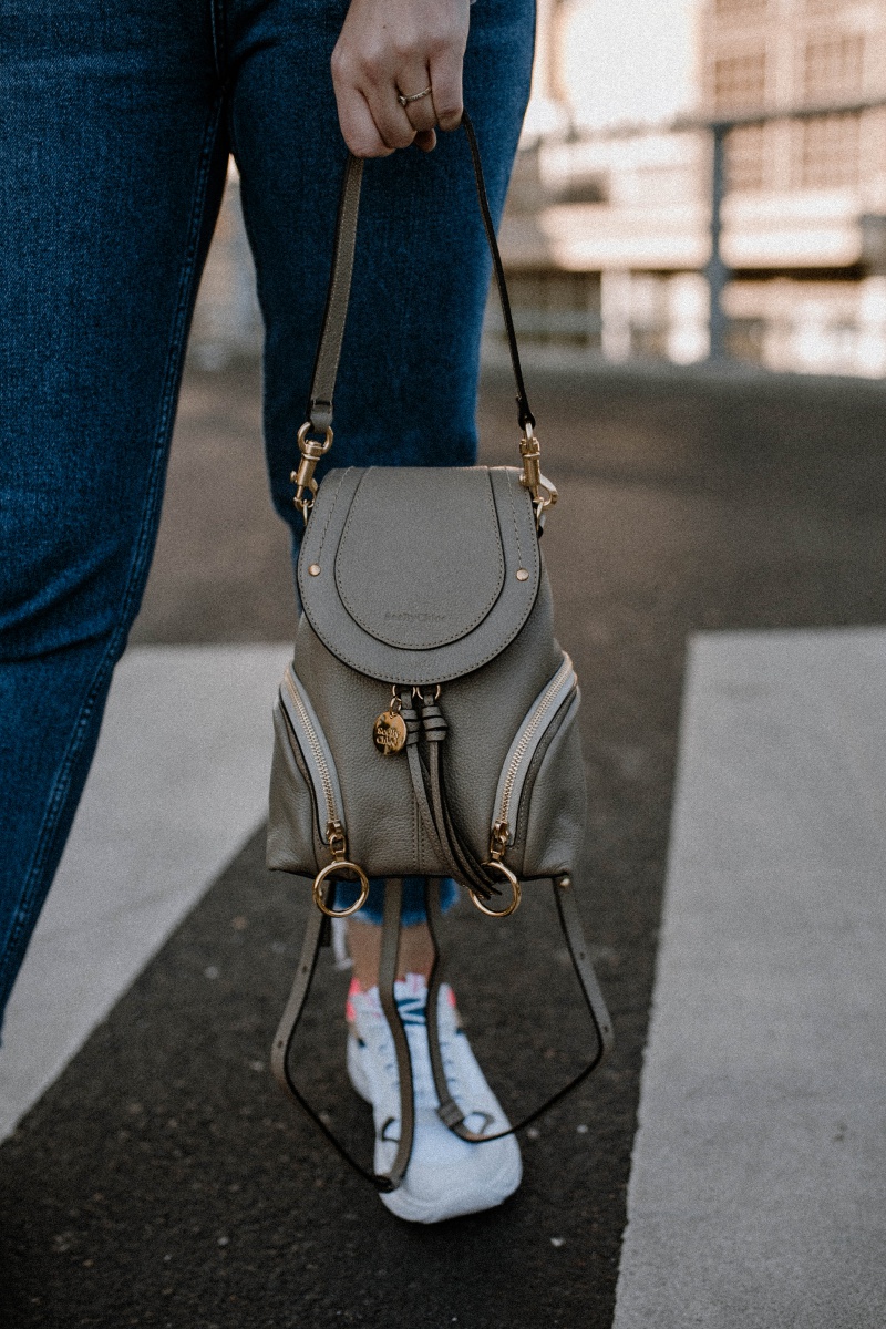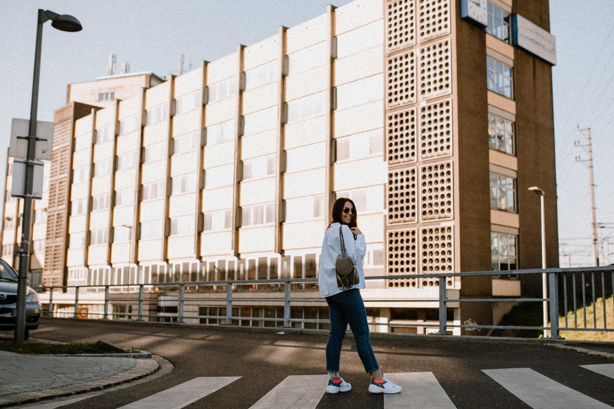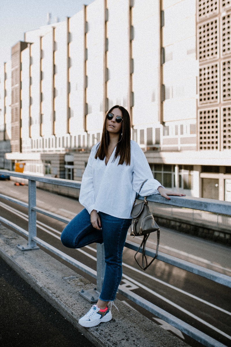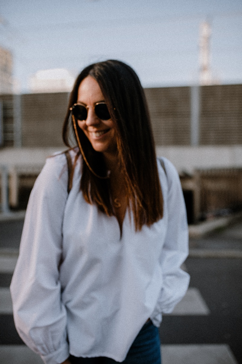 Am besten den Look dazu, ganz einfach halten. Ich habe mich für Jeans und eine weiße Bluse entschieden, die ich momentan sehr gerne trage. Ich mag den Schnitt, die Ballon-Ärmel und auch den Ausschnitt total gerne. Mein kleiner Rucksack darf natürlich bei diesem Look nicht fehlen. Ich sags euch, der war jeden Cent wert. Die Farbe passt einfach überall dazu und ich bin super happy mit dem Teil.