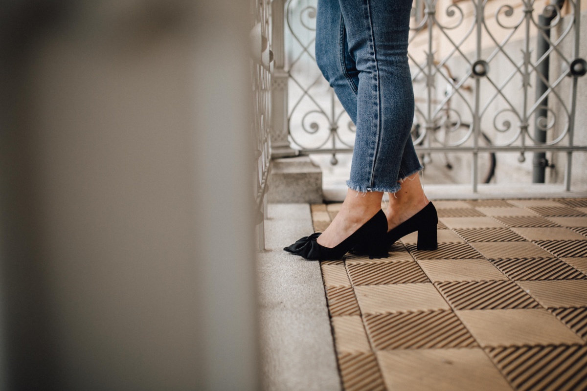 Aber, here we go. Kombiniert habe ich diesen mit einem ganz einfachen Ripp-Shirt. Ich liebe diesen lockeren, lässigen Schnitt. Dazu Jeans und meine geliebten Pumps, die ich viel zu selten trage. Vielleicht, weil sie mir ein klein wenig zu eng sind. Ich finde, die geben dem Look noch das gewisse Etwas.