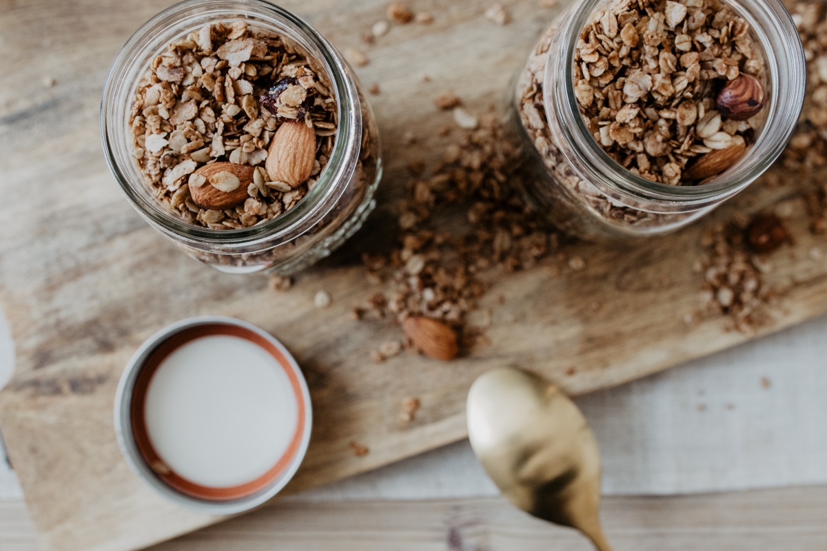 Ihr könnt euer Granola mit Joghurt und Früchten genießen. Ich persönlich liebe es ja auch nur mit Vollmilch. Lasst es euch schmecken!