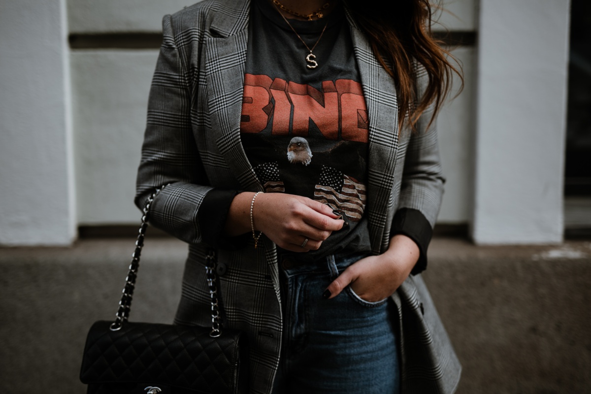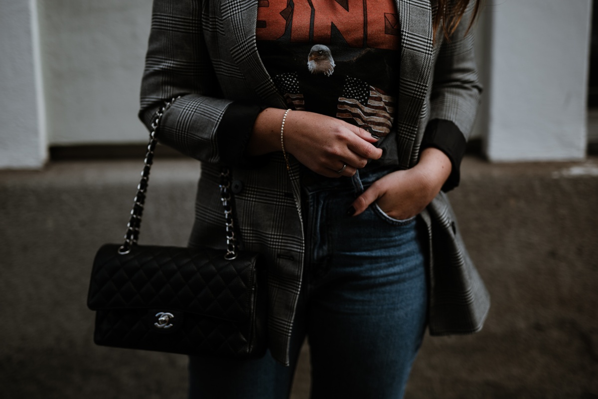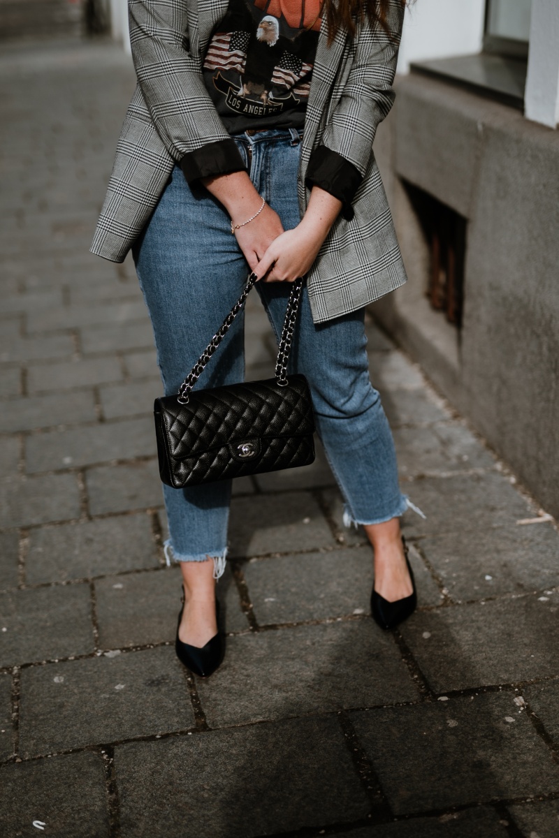 Shirt. Anine Bing // Blazer. Pimkie // Tasche. Chanel // Jeans. Bershka // Schuhe. Deichmann