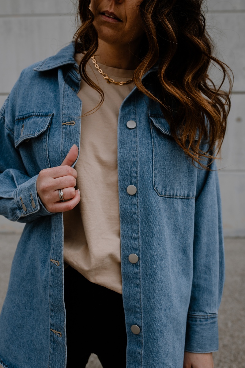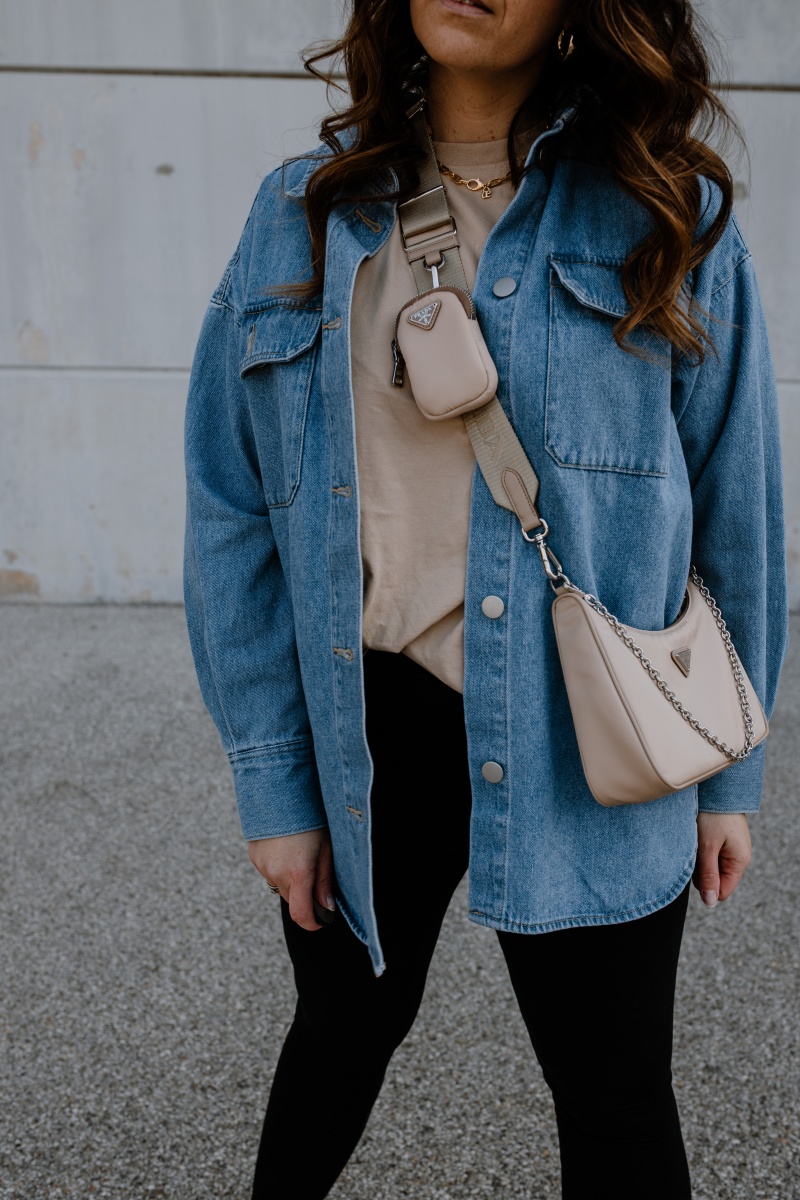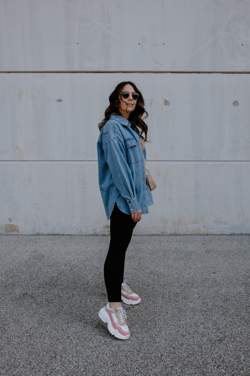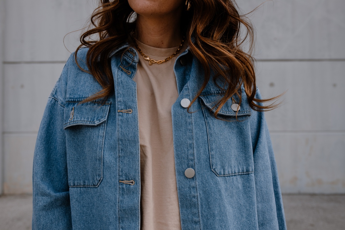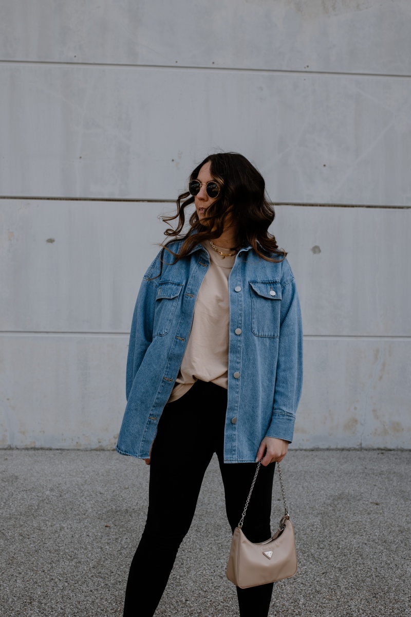 Im April dreht sich alles um Shackets – eine Mischung aus Jacke und Shirt. Ich habe mich für die Denim-Variante entschieden. Mein Outfit besteht eigentlich großteils aus Basics – habe wieder richtig Gefallen daran gefunden.