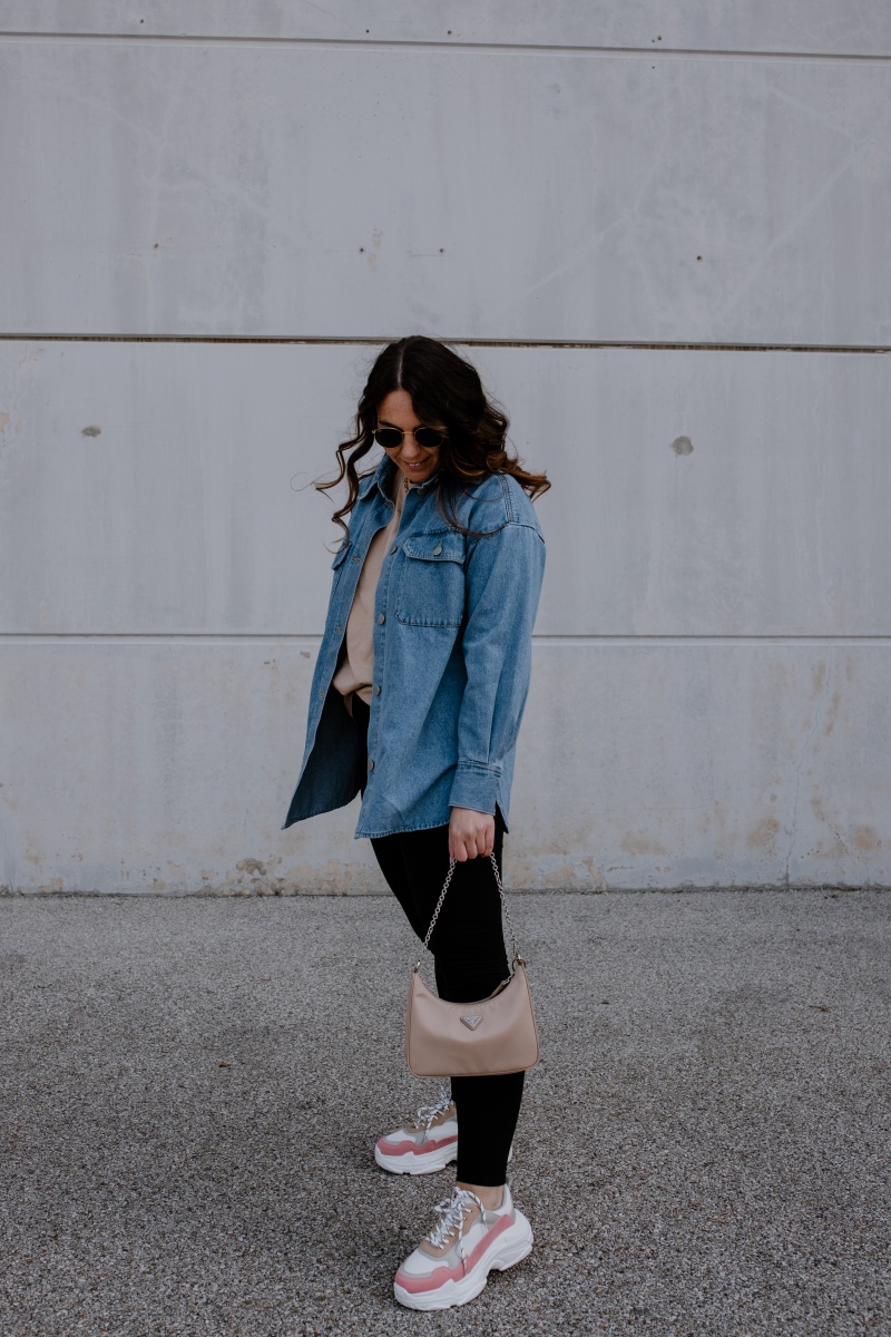 Dieses Jeanshemd kann man sowohl als Jacke, wie auch als Hemd / Shirt tragen. Ich liebe den lässigen Look und meine neue Tasche verleiht dem Look das gewisse Etwas. Die Sneaker sind ein absoluter Traum und am liebsten würde ich sie Tag und Nacht tragen.