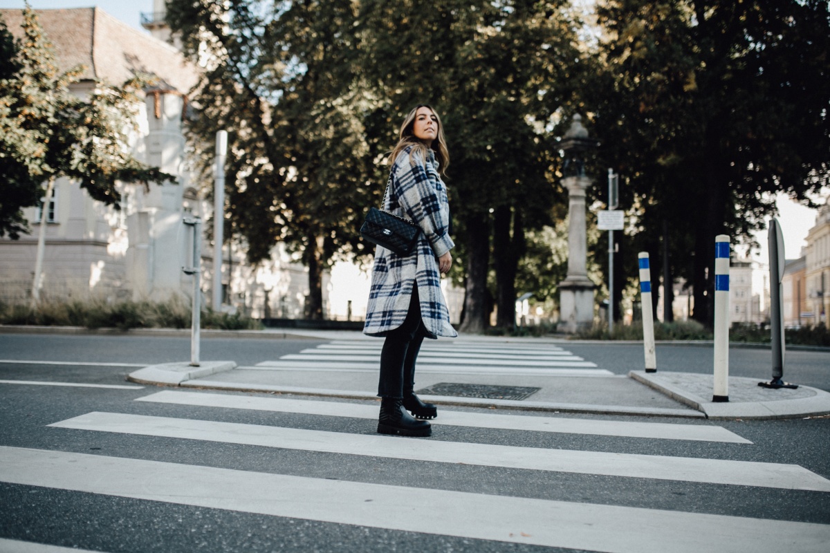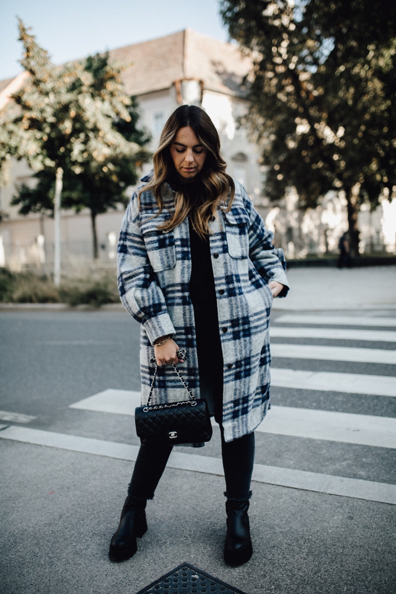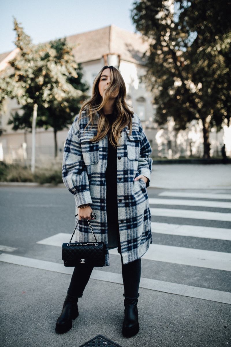 Sweater. ZARA // Mantel. H&M // Jeans. Bershka // Tasche. Chanel // Boots. Bershka