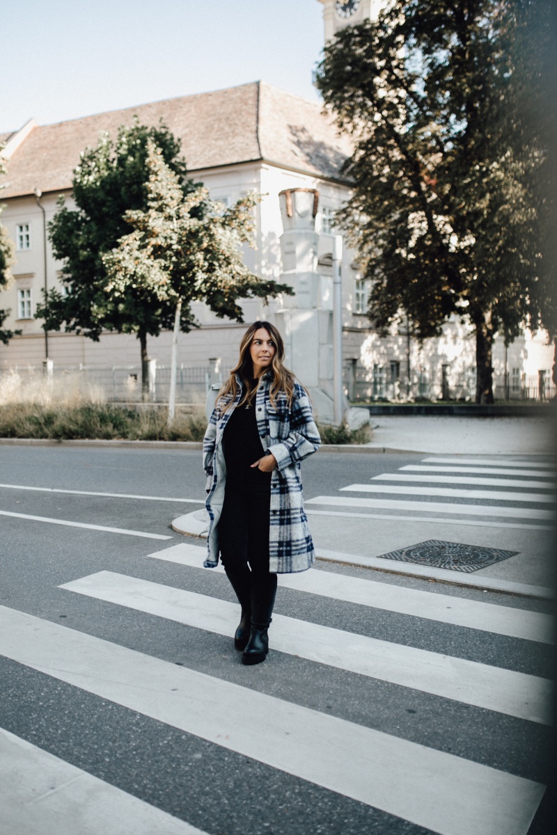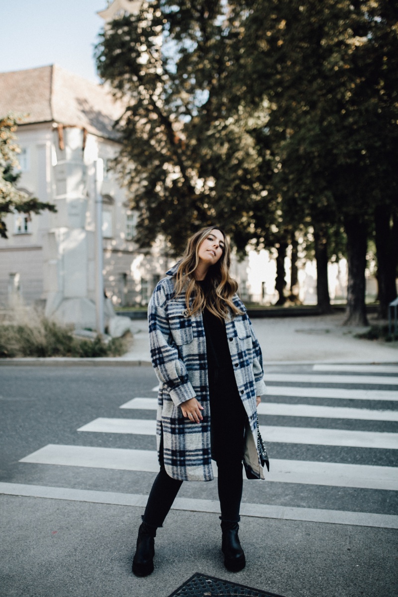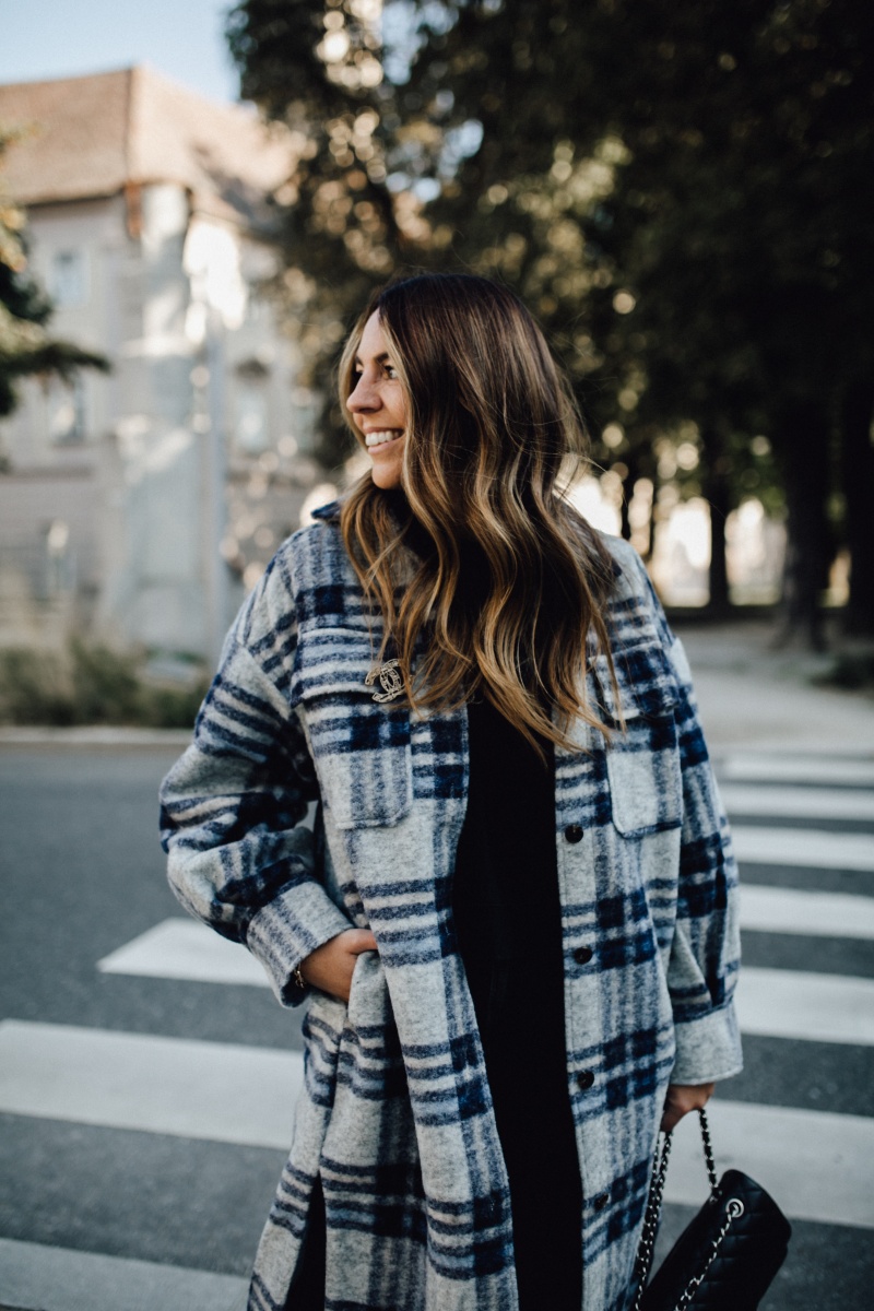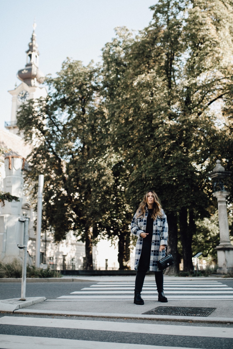Sweater. ZARA // Mantel. H&M // Jeans. Bershka // Tasche. Chanel // Boots. Bershka