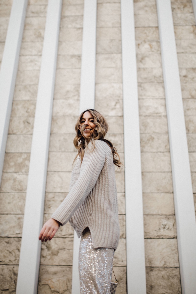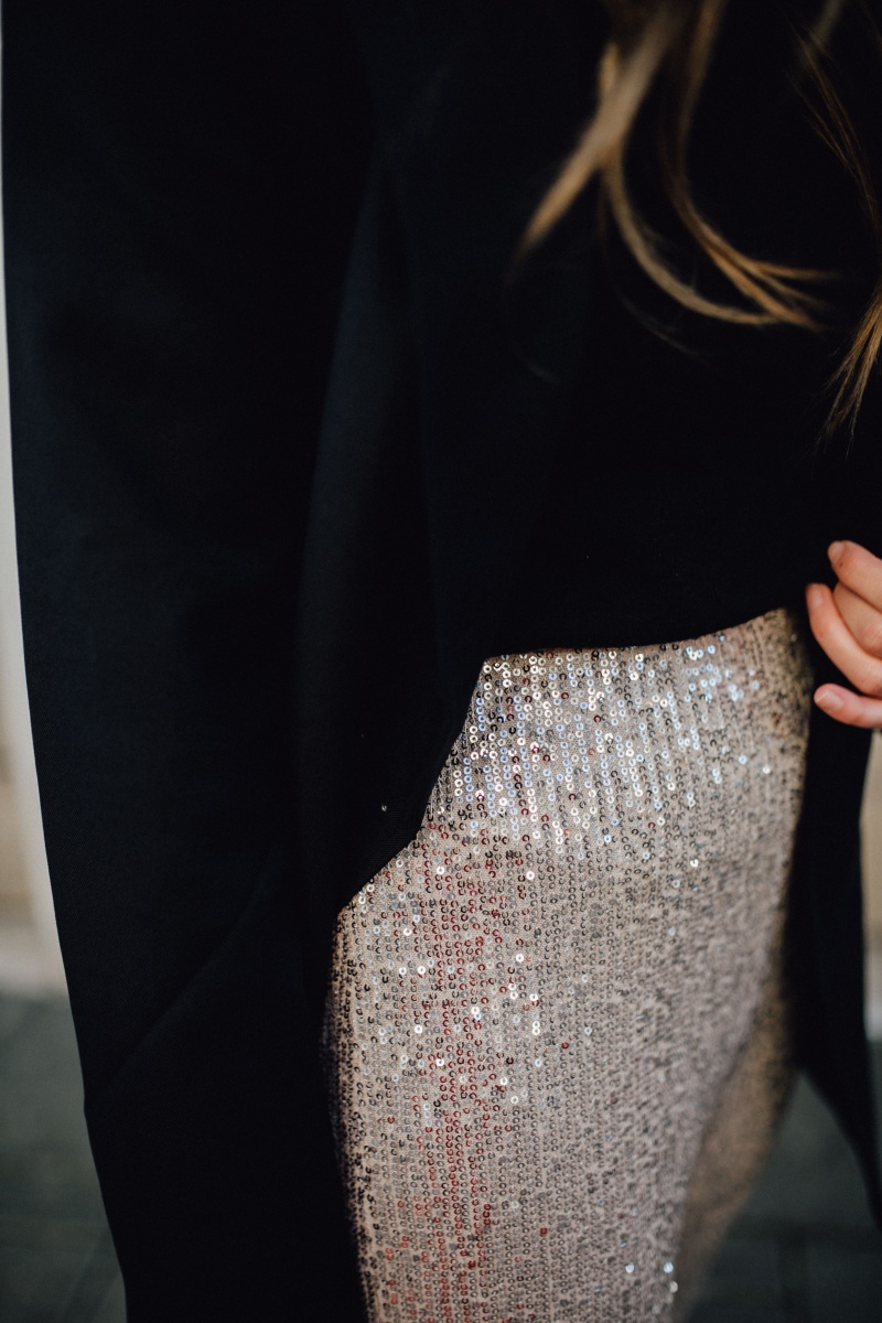 Im Dezember zeigen wir euch verschiedene Looks, wie ihr auch mit einem gemütlichen Look ein Hingucker auf euren Feierlichkeiten seid. Ich habe heute einen #fromdaytonight Look für euch und zeige euch zwei Varianten. Ich liebe Pailetten und diese gehören für mich zur festlichsten Zeit des Jahres dazu.