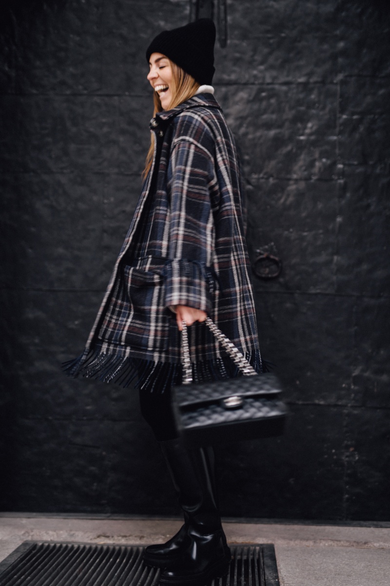Für die kalte Jahreszeit habe ich einen Look gewählt, der ganz einfach nachgestylt werden kann. Leggings, Rollkragenpullover, Shacket und Stiefel. Diesen Winter kommt man an kniehohen Stiefeln nicht vorbei – ein absolutes Must-Have der Saison. Auch Shackets sind seit letztem Jahr nicht mehr wegzudenken und man kann diese in allen Varianten shoppen. Ob kariert, einfarbig, mit Fransen, lang oder kurz – hier ist für jeden das passende Modell dabei. Ein Rollkragenpullover in einer dezenten Farbe sollte mit sinkenden Temperaturen in jedem Kleiderschrank zu finden sein.