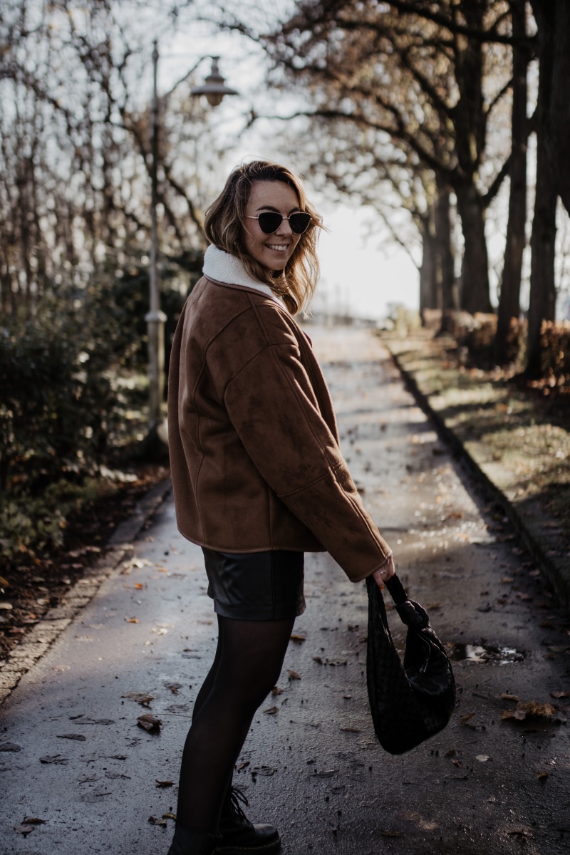 Outfitdetails: Rock. H&M // Pullover. Omoda // Jacke. Omoda // Sonnenbrille. LeSpecs // Tasche. NoName // Strumpfhose. Calzedonia // Boots. Dr. Martens